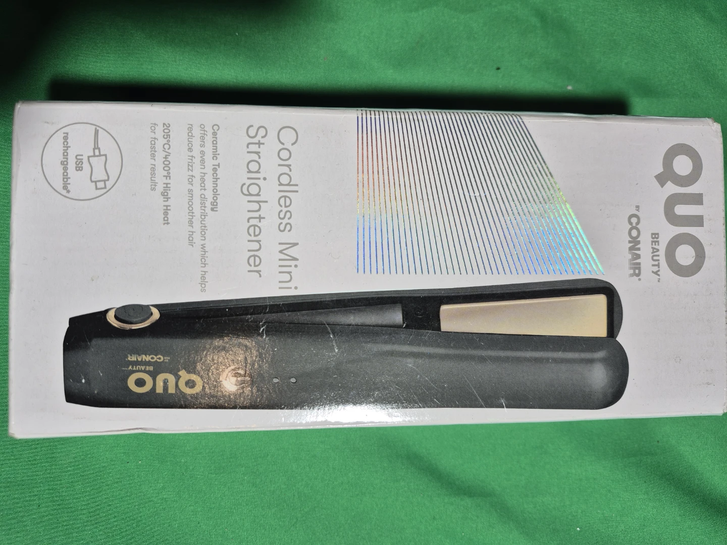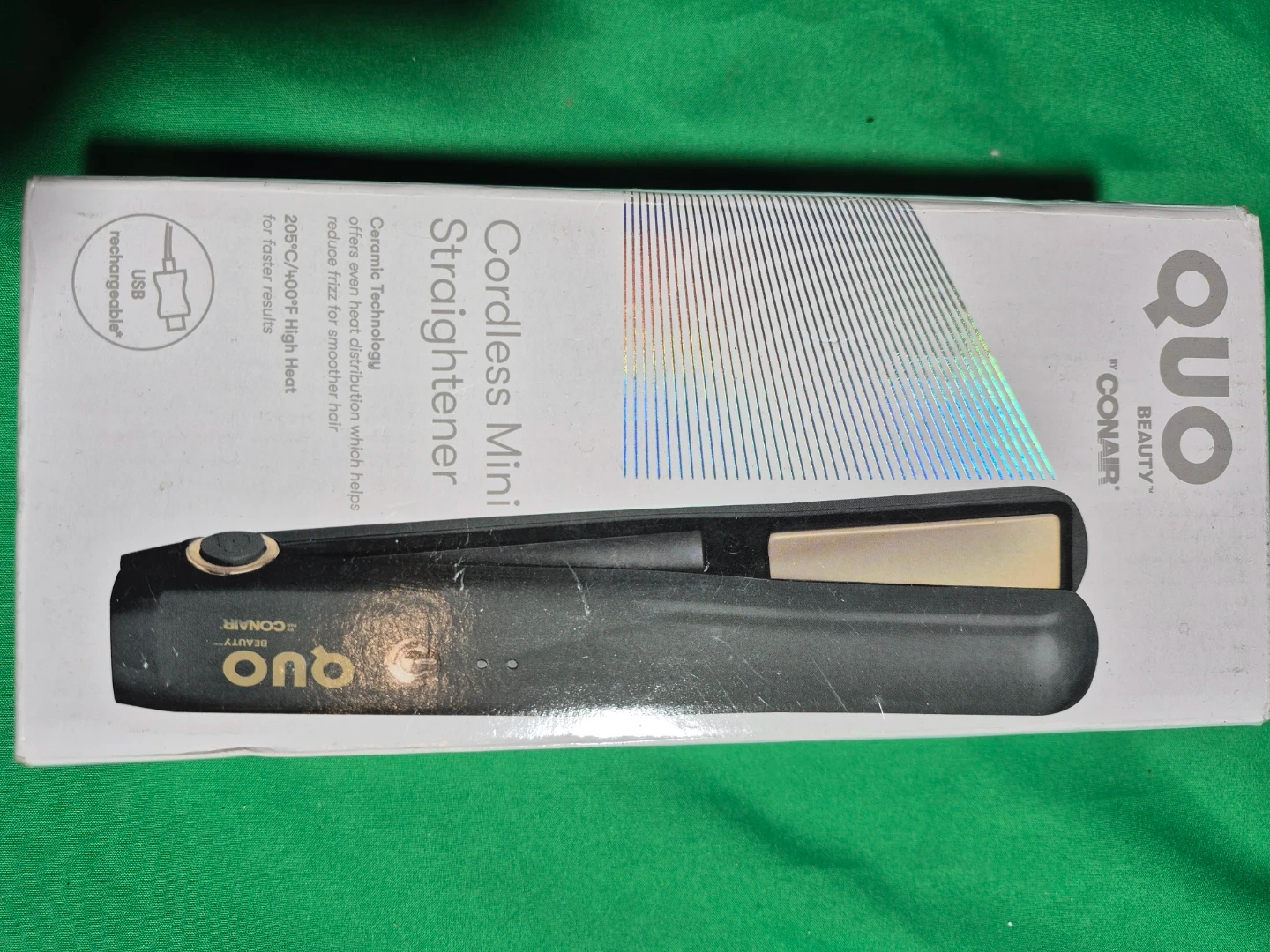 Selling a Quo by Conair cordless mini straightener! It features ceramic technology that offers even heat distribution, which helps reduce frizz for smoother hair. It heats up to 205°C/400°F for high heat and faster results. It's also USB rechargeable! Never been opened