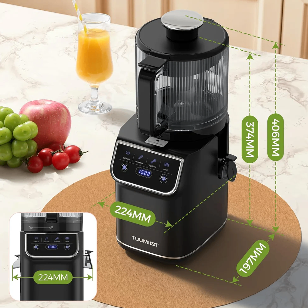 Product details: https://tuumiist.com/products/cold-press-juicer-100oz-large-capacity-juicer-machine-with-touch-screen-6-5-wide-chute-for-whole-fruit-high-yield-slow-masticating-juicer-easy-to-clean-quiet-operation