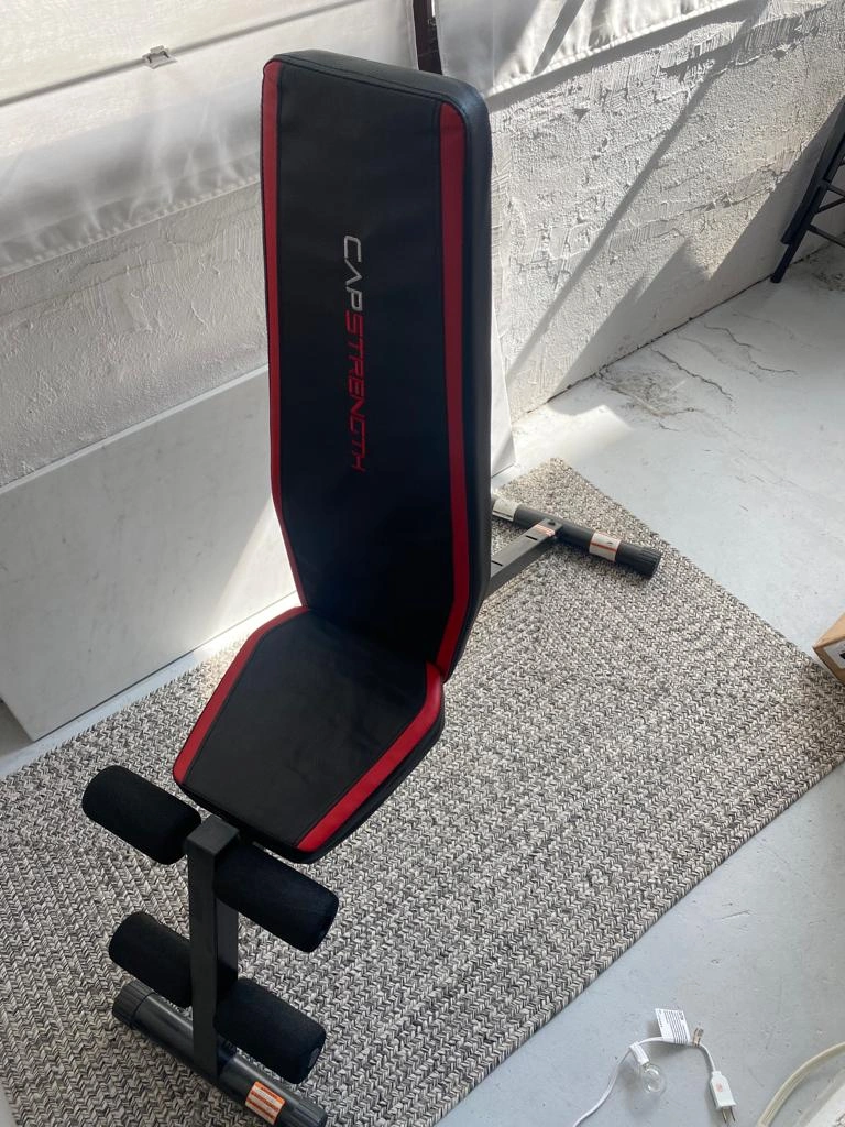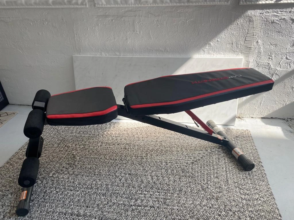 Barely used adjustable weight bench. Four positions: flat, incline, decline and military