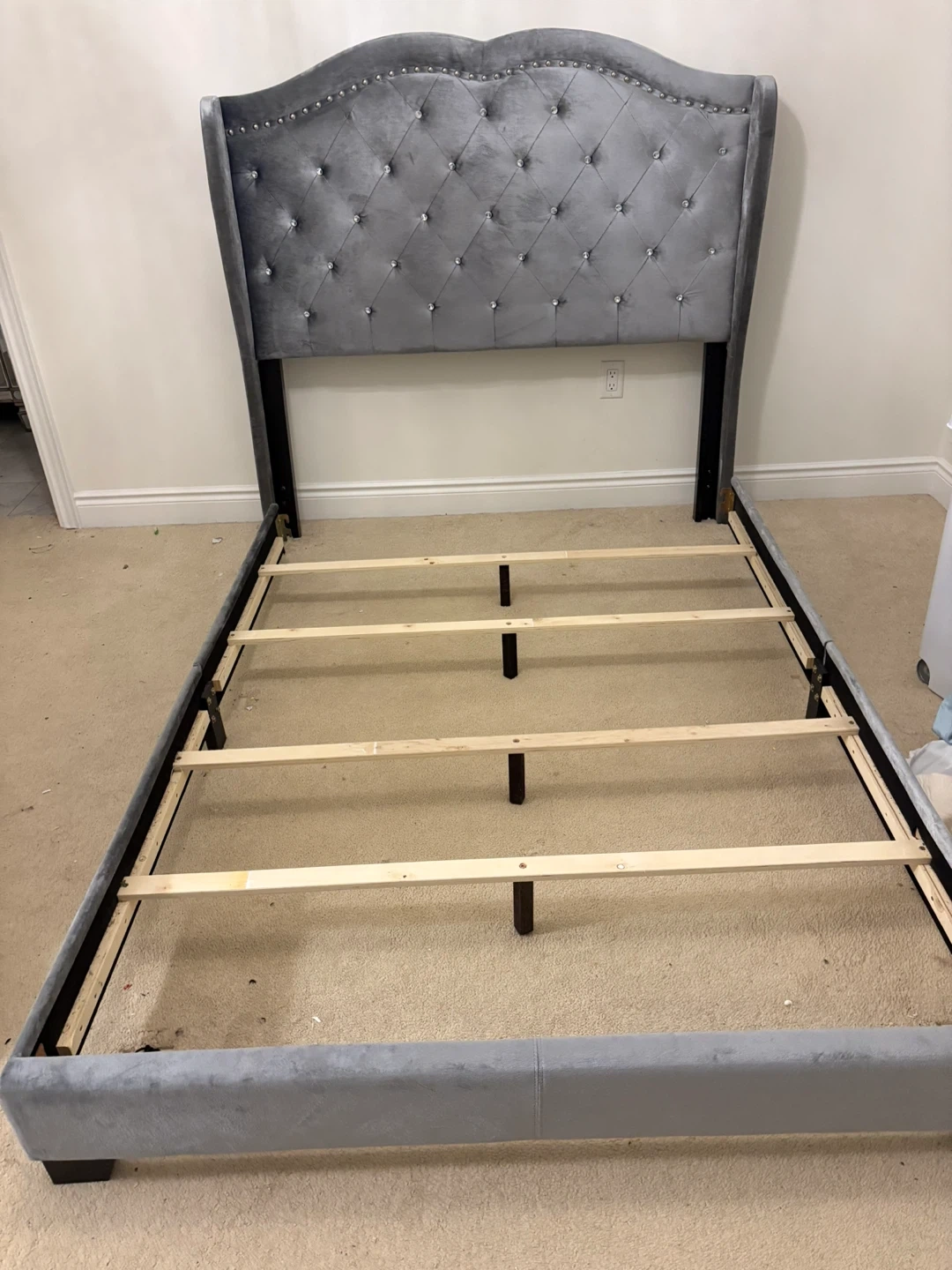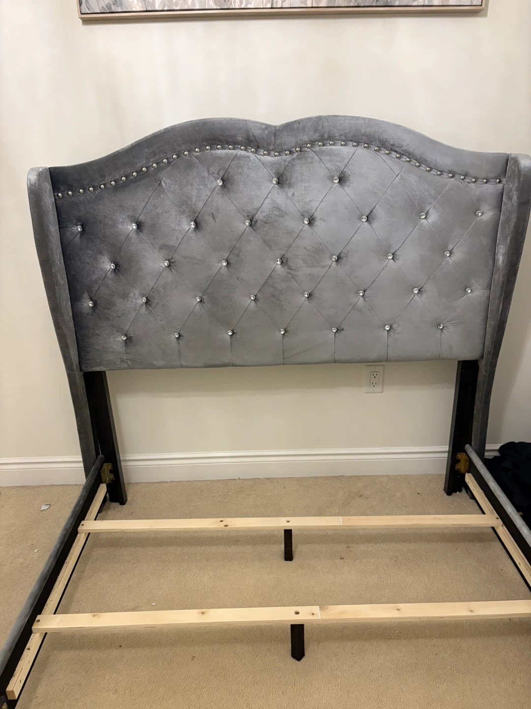Gorgeous gray velour tufted bed - double size EUC