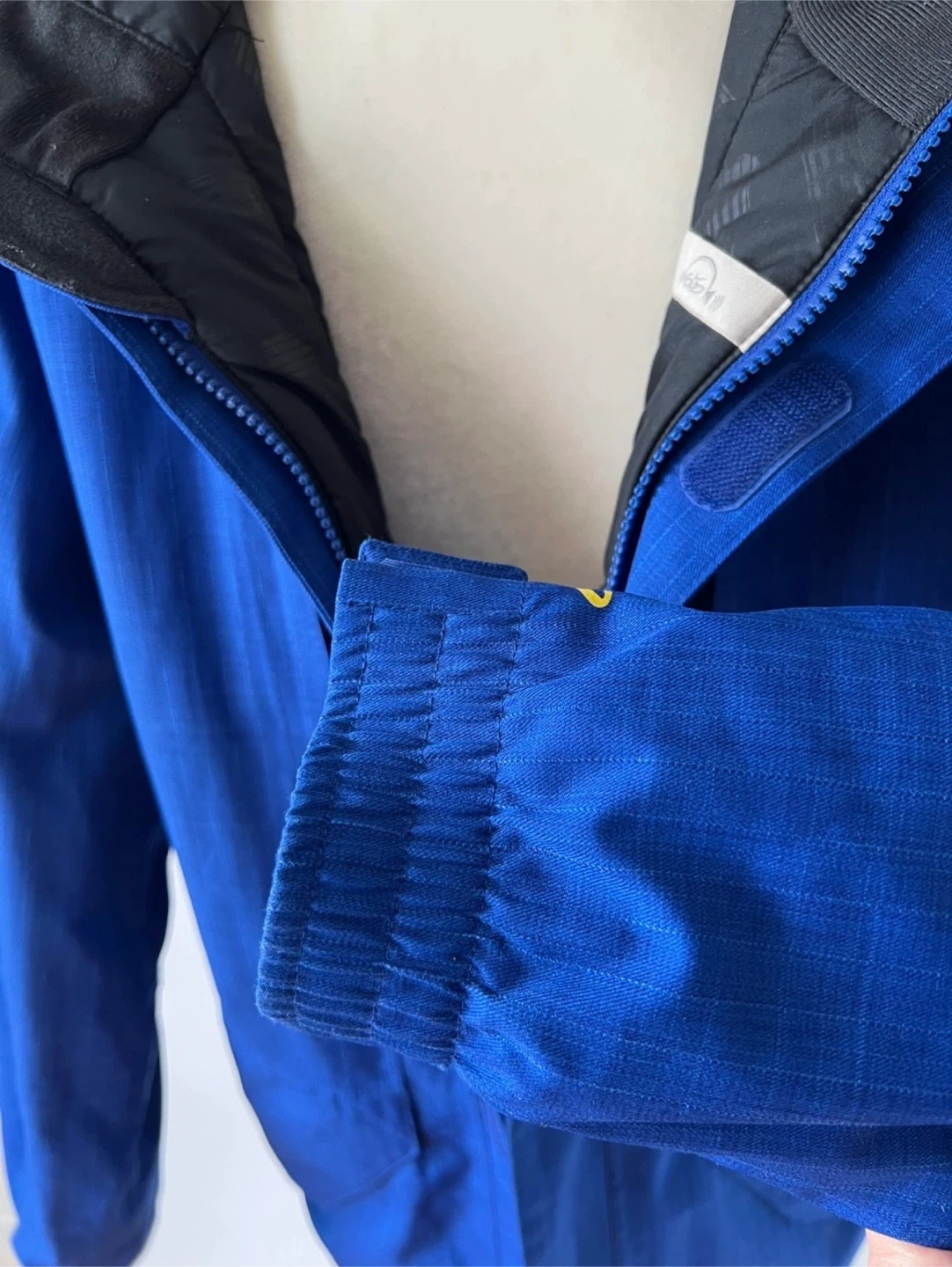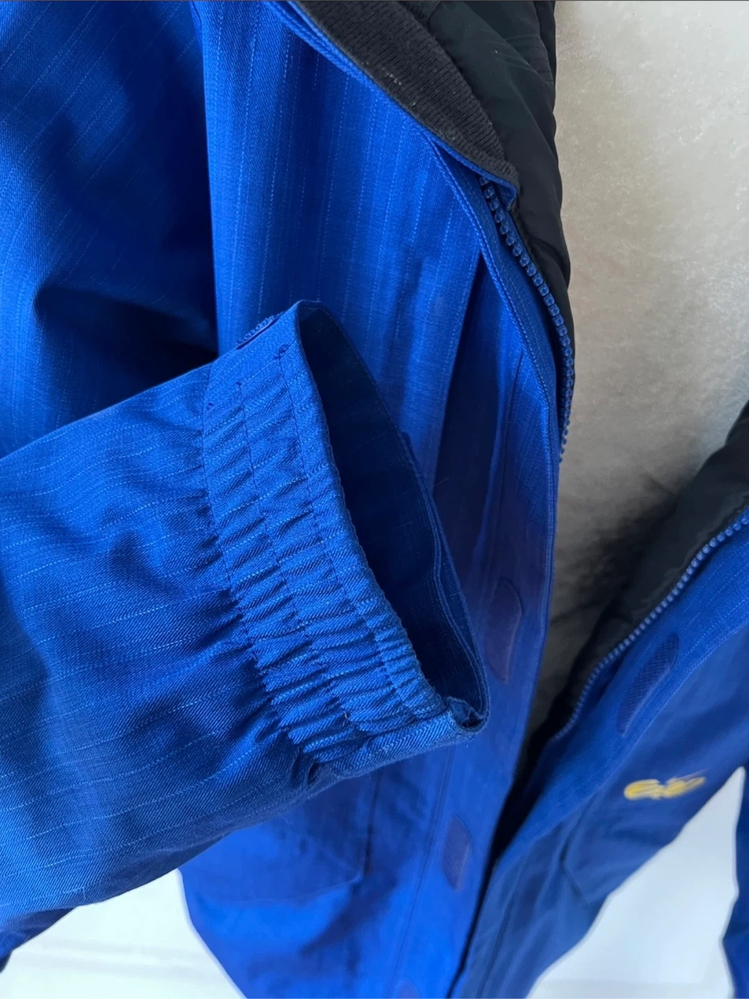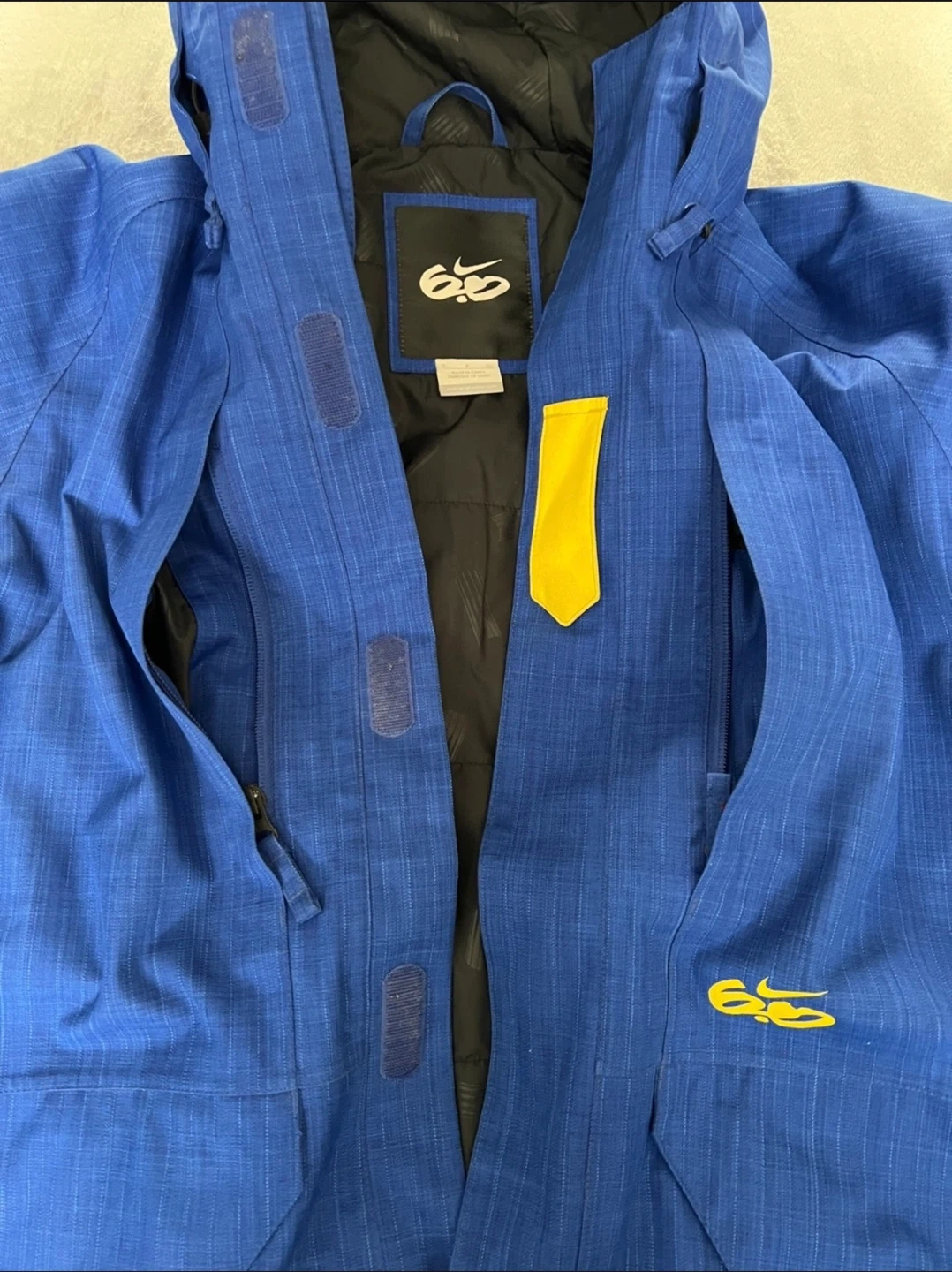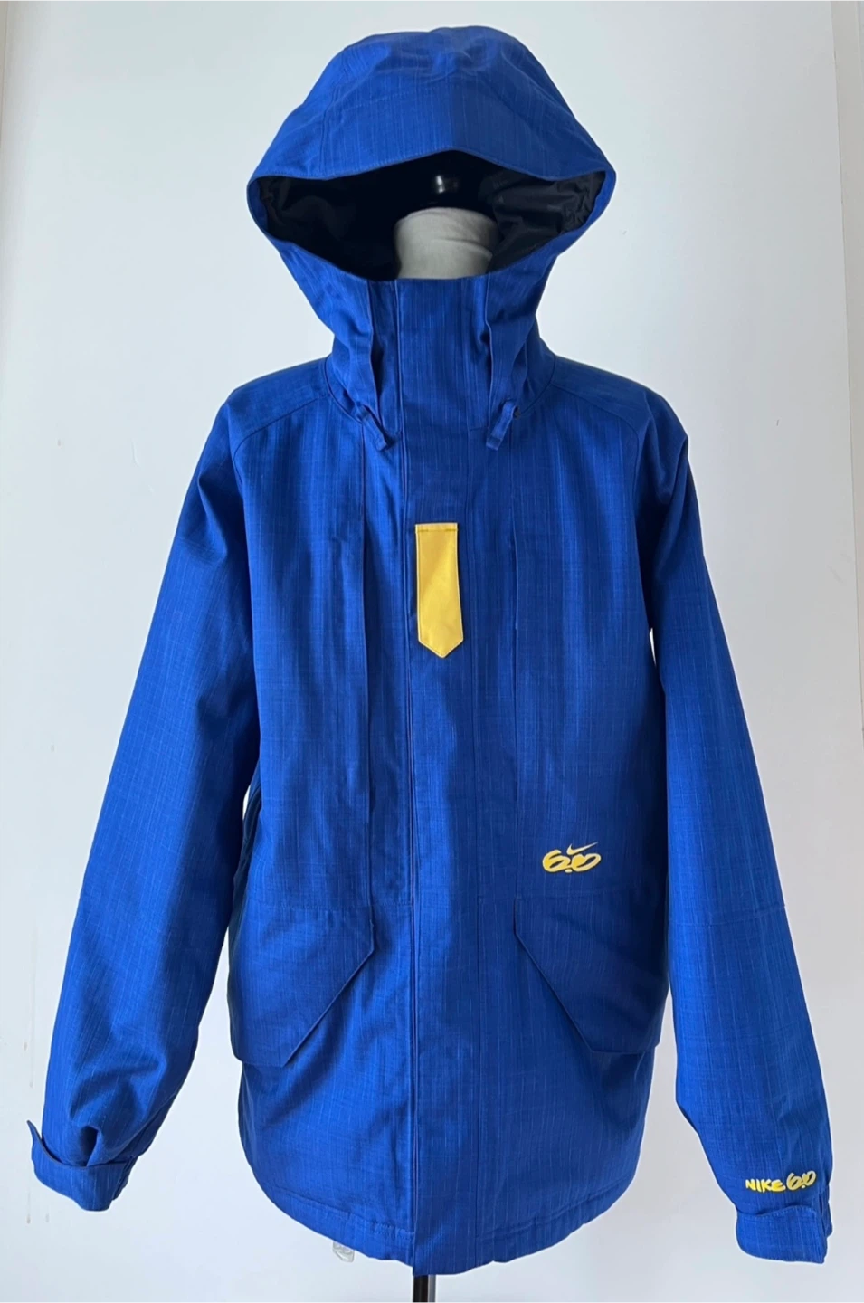 Nike 6.0 Men's Nike 6.0 snowboarding jacket. Blue with yellow accents. Fully zippered with a hood. Features adjustable cuffs and waist. Excellent condition.