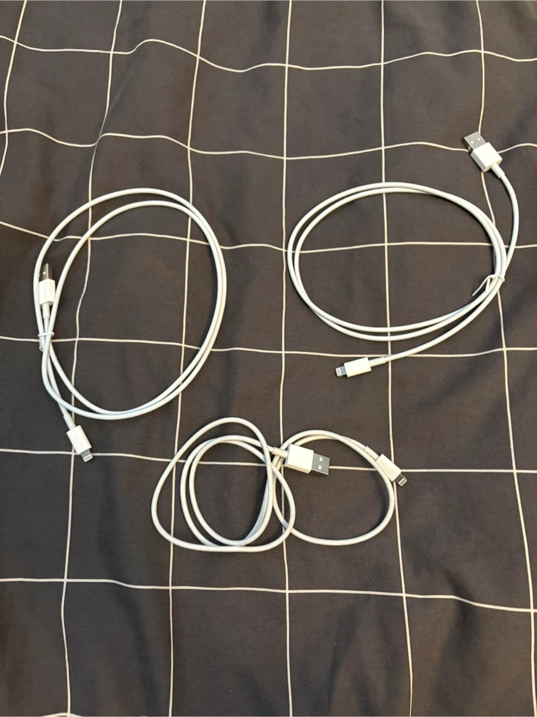 Selling three 3ft USB to Lightning cables (MFi Certified). One is lightly used and the other two are brand new.