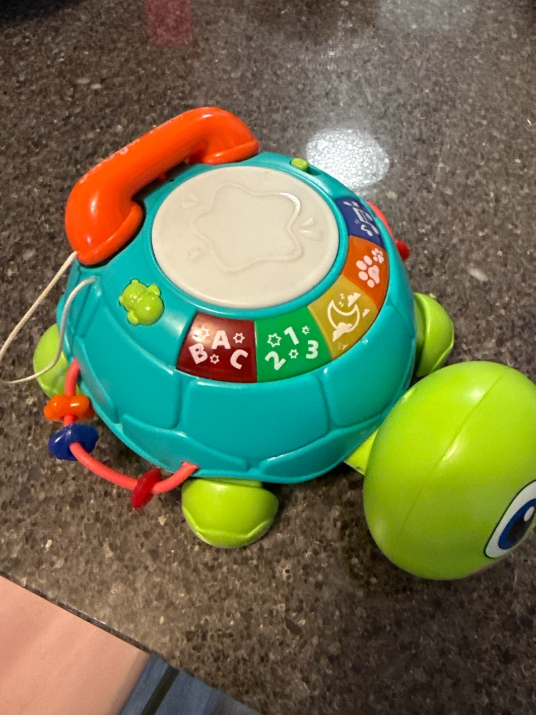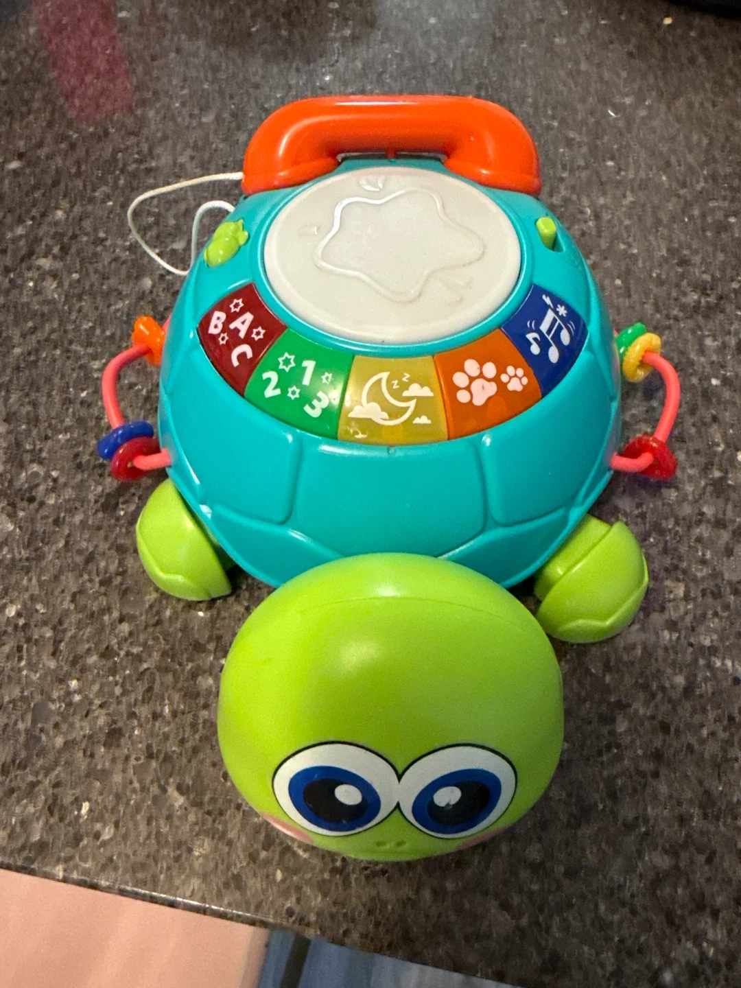 This adorable Infantino Turtle Talk N Tumble learning toy is perfect for little ones! It features colourful buttons and shapes to help develop fine motor skills and teach ABCs, numbers, and animal sounds. Great for tummy time or playtime!
