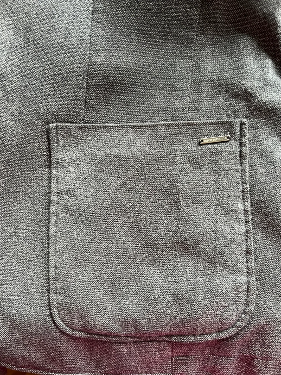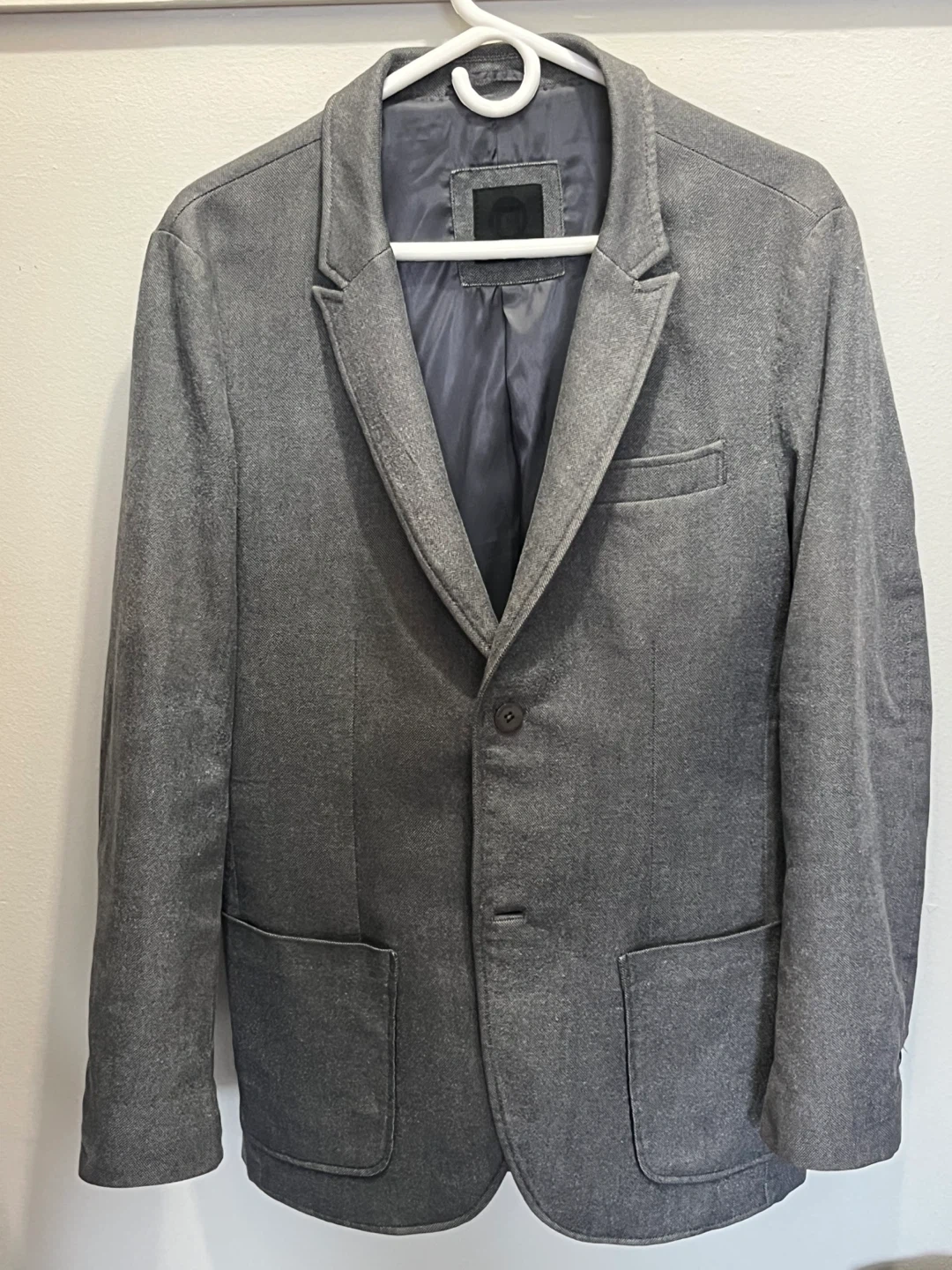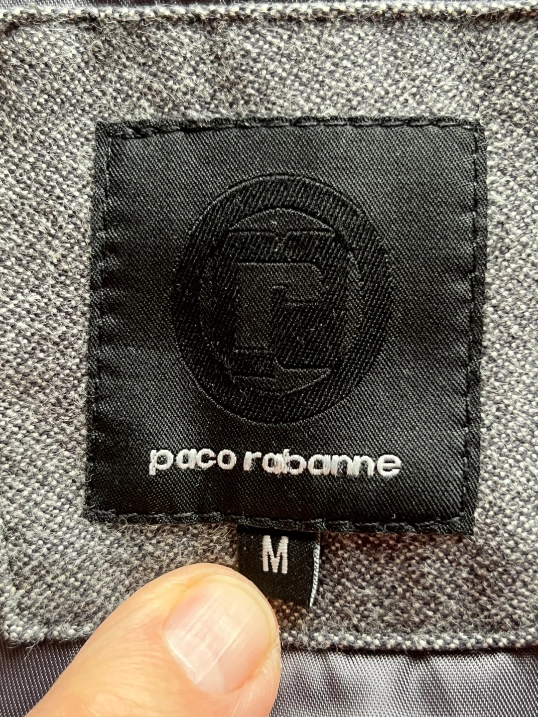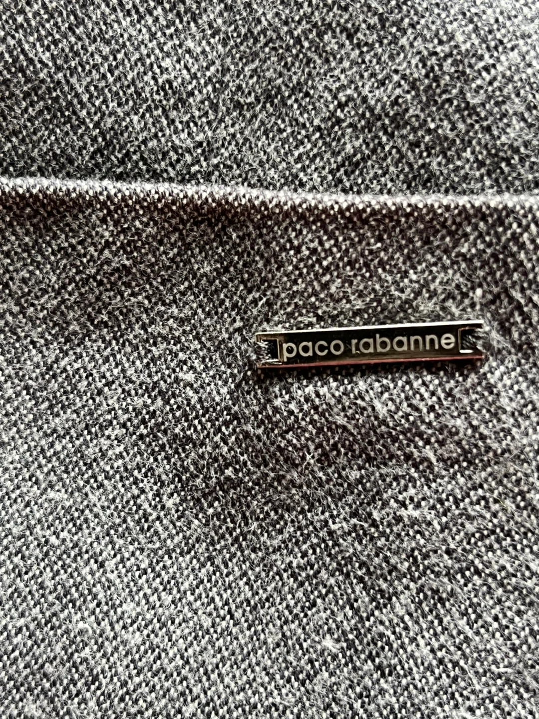 Here's a stylish grey blazer from Paco Rabanne! It's in good shape and ready for a new home. This blazer is perfect for dressing up or down depending on the occasion.
