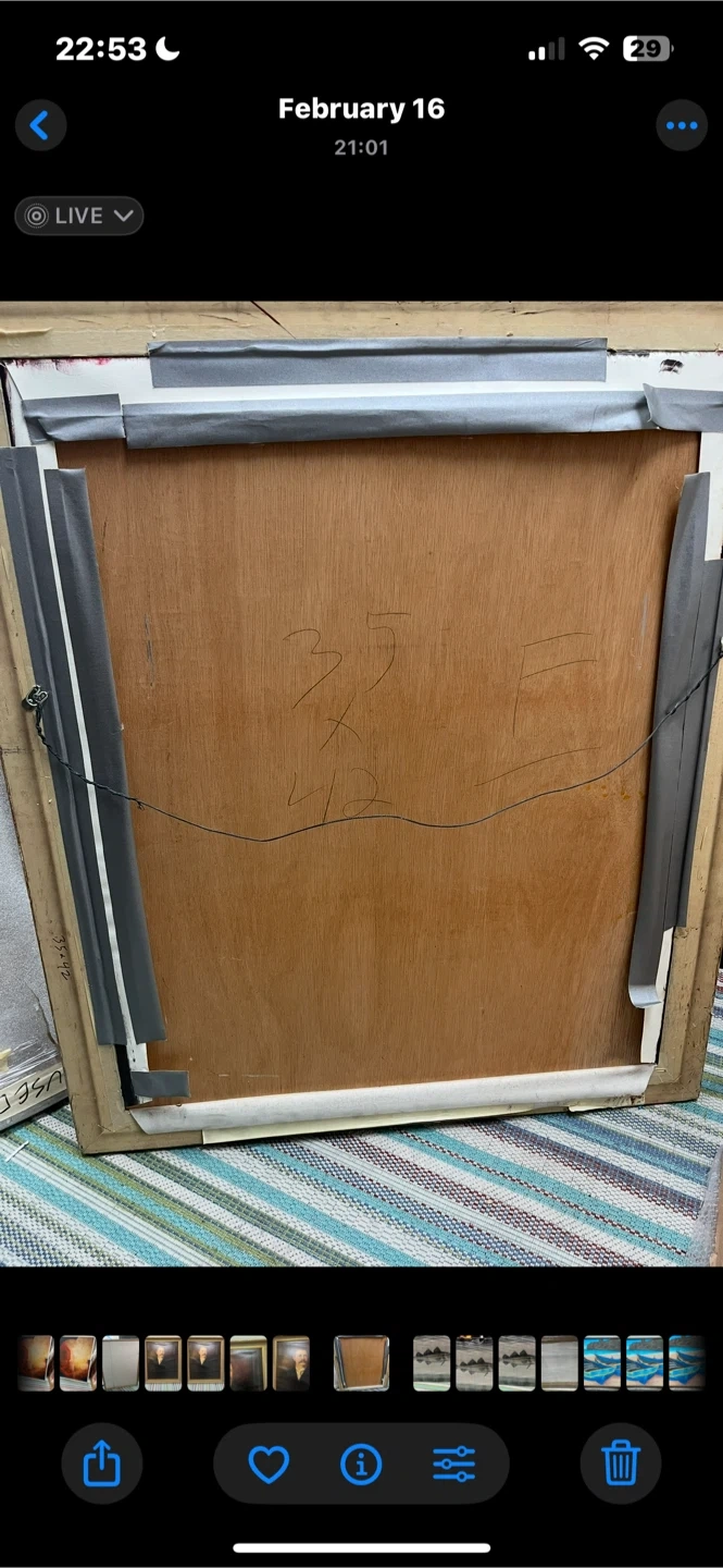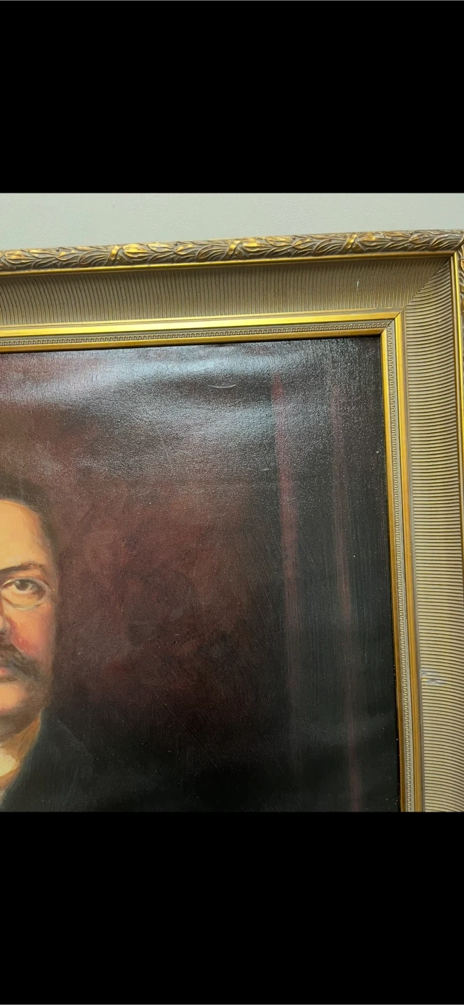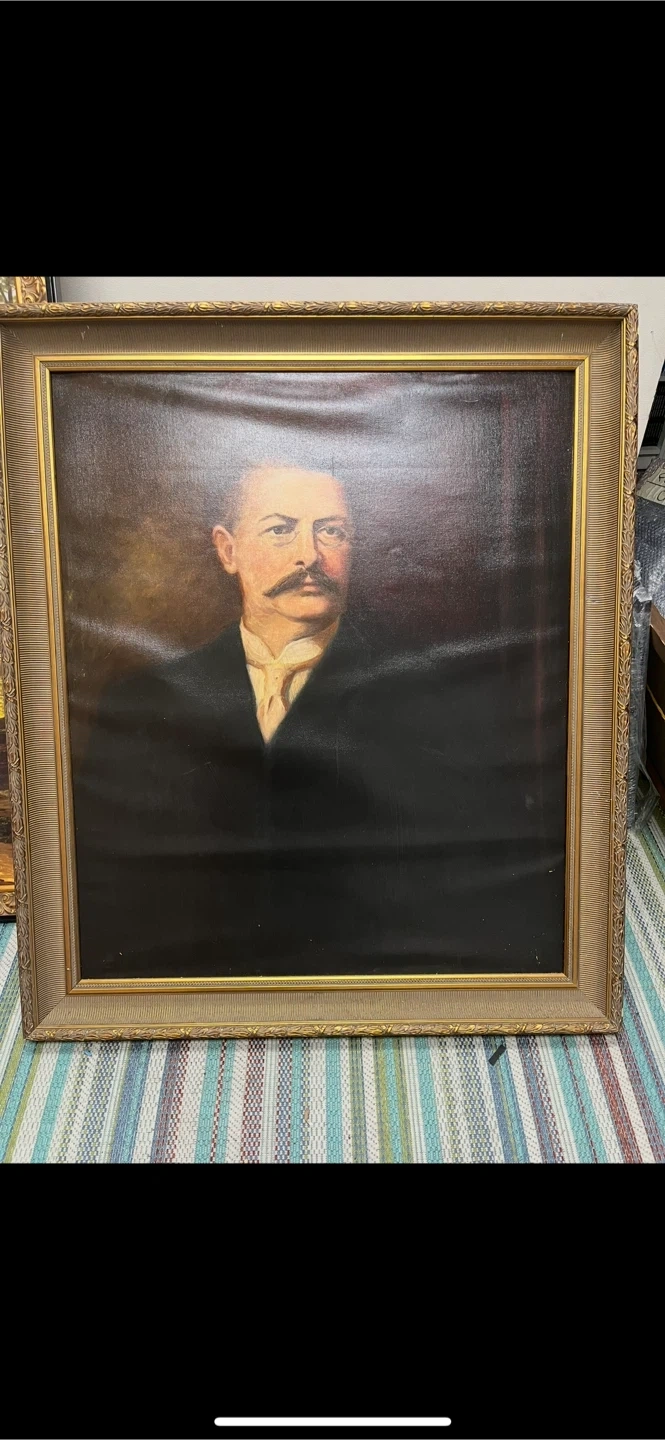 Vintage portrait painting in a gold-colored frame. The back of the painting has "35 x 42" written on it, so that's the approximate size in inches
