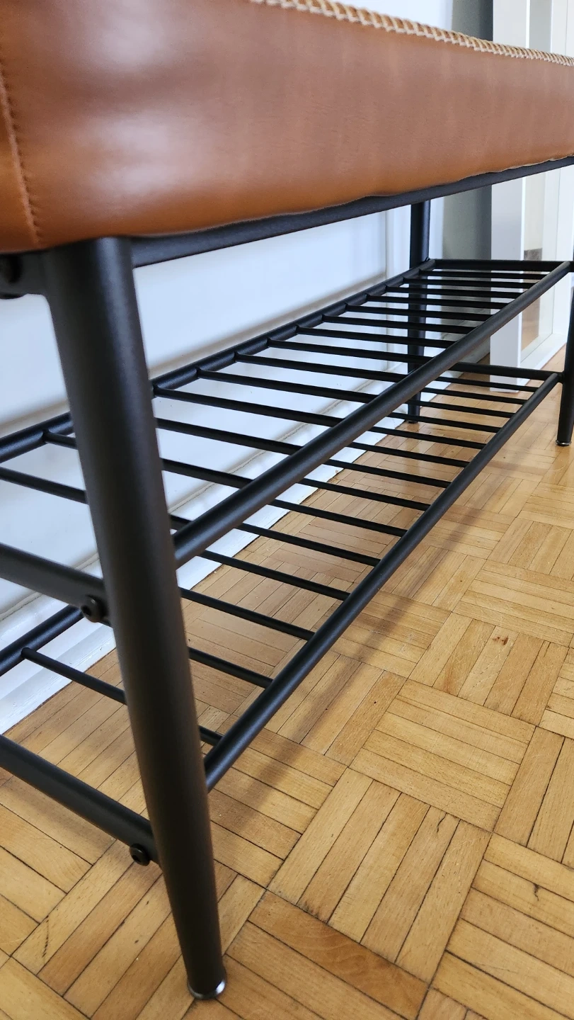 This padded brown bench is brand new, elegant, high quality, and comfortable - has a padded leather seat and 2 shelves for storage. It's useful to put in the entryway, living room, or bedroom. It's brand new and still in box. I can assemble for extra $5 deposited in advance. The original price was $373+ with tax without assembly fee yet (save $$ and time), so price is not negotiable. See dimensions and other features in the pictures.