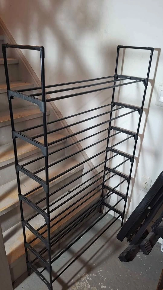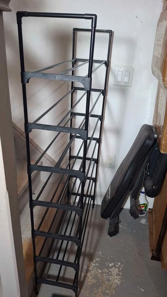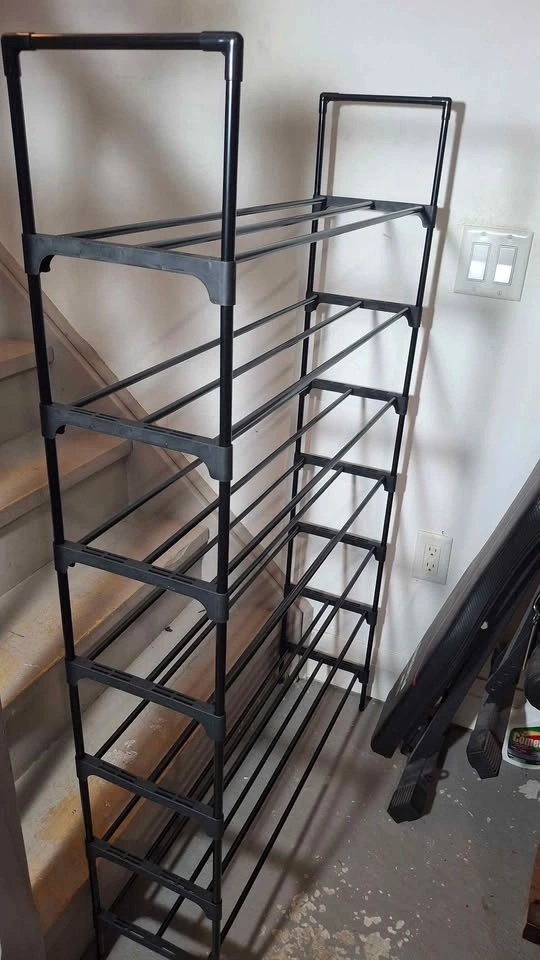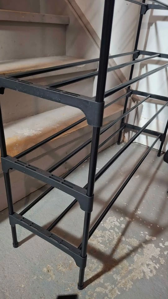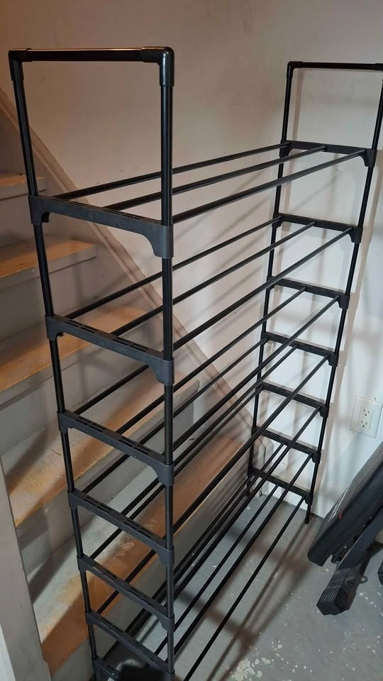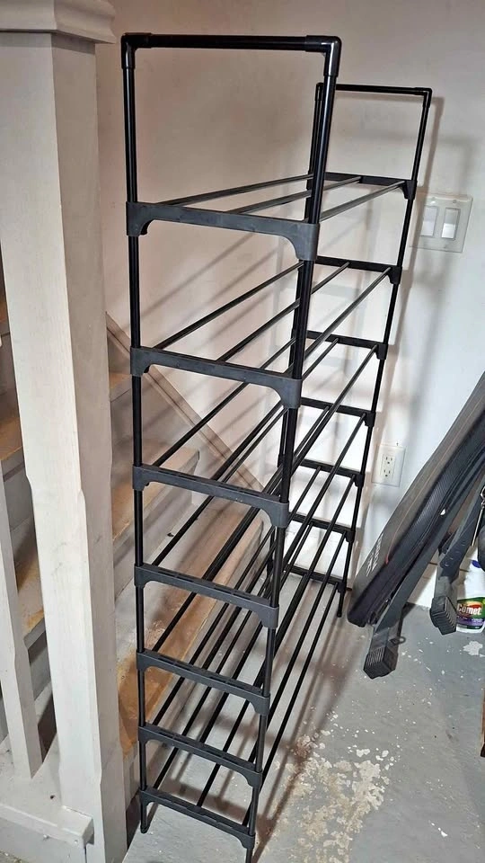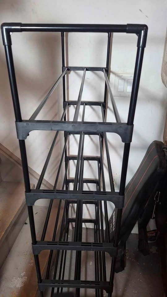 This is made of metal bars painted black and plastic connector brackets. All parts are in black.