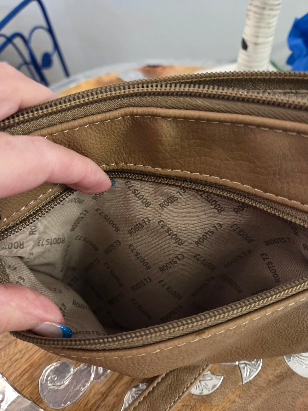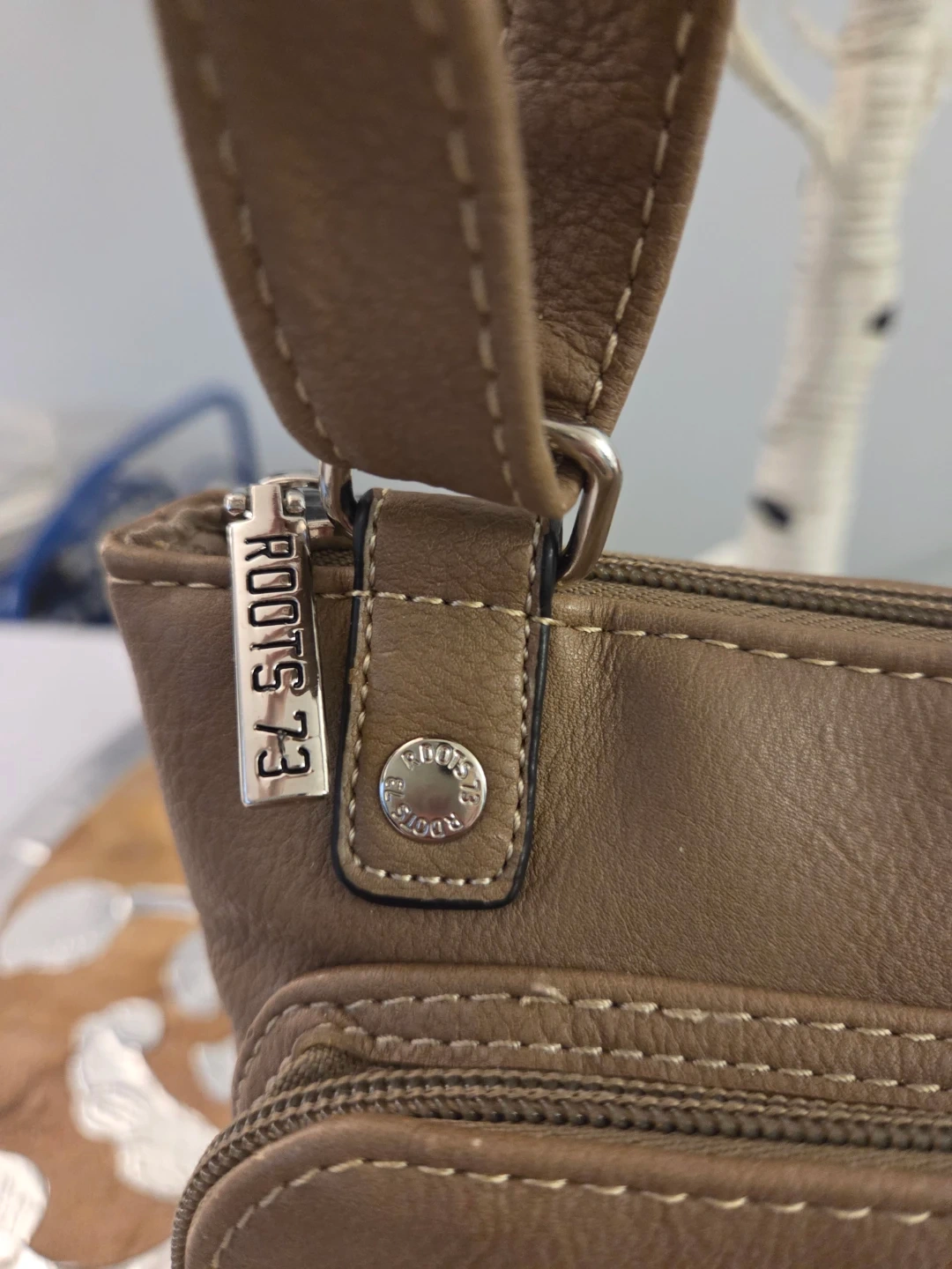 Selling a Roots 73 leather crossbody/shoulder bag in a lovely tan colour. It has a convenient zippered pocket on the front & back and the interior lining is also branded with the Roots 73 logo. It's a great bag for everyday use!