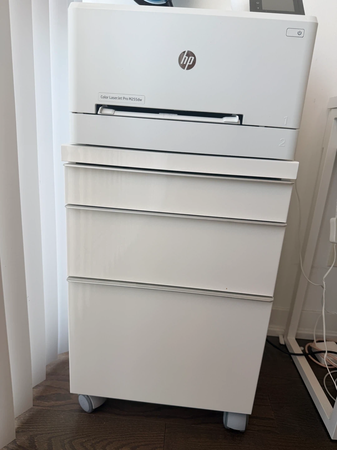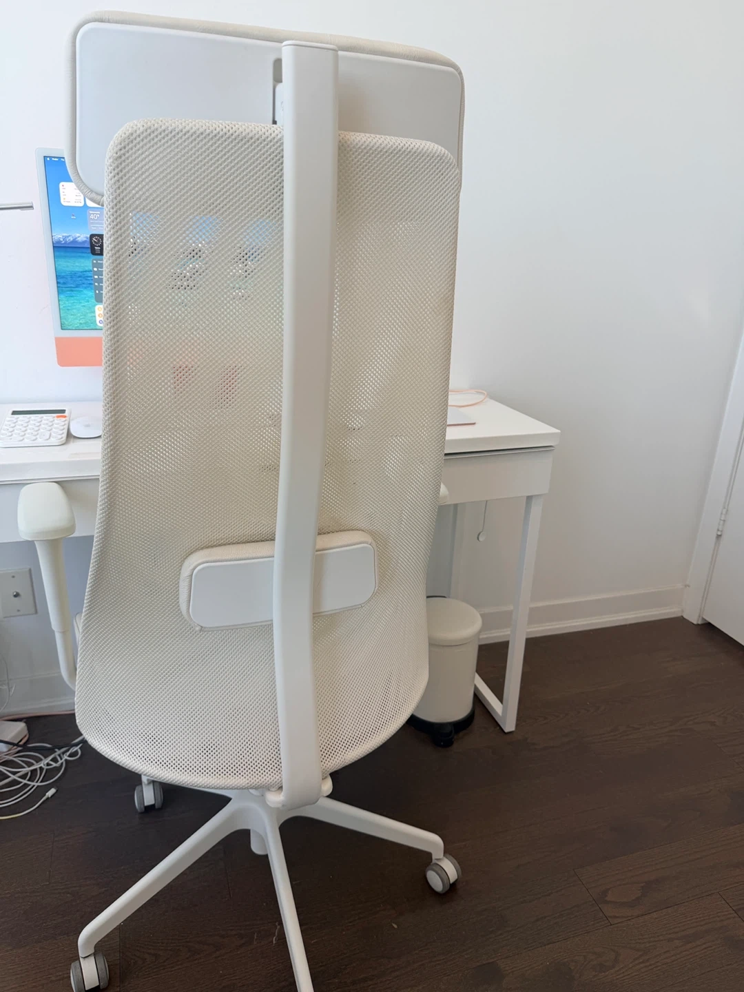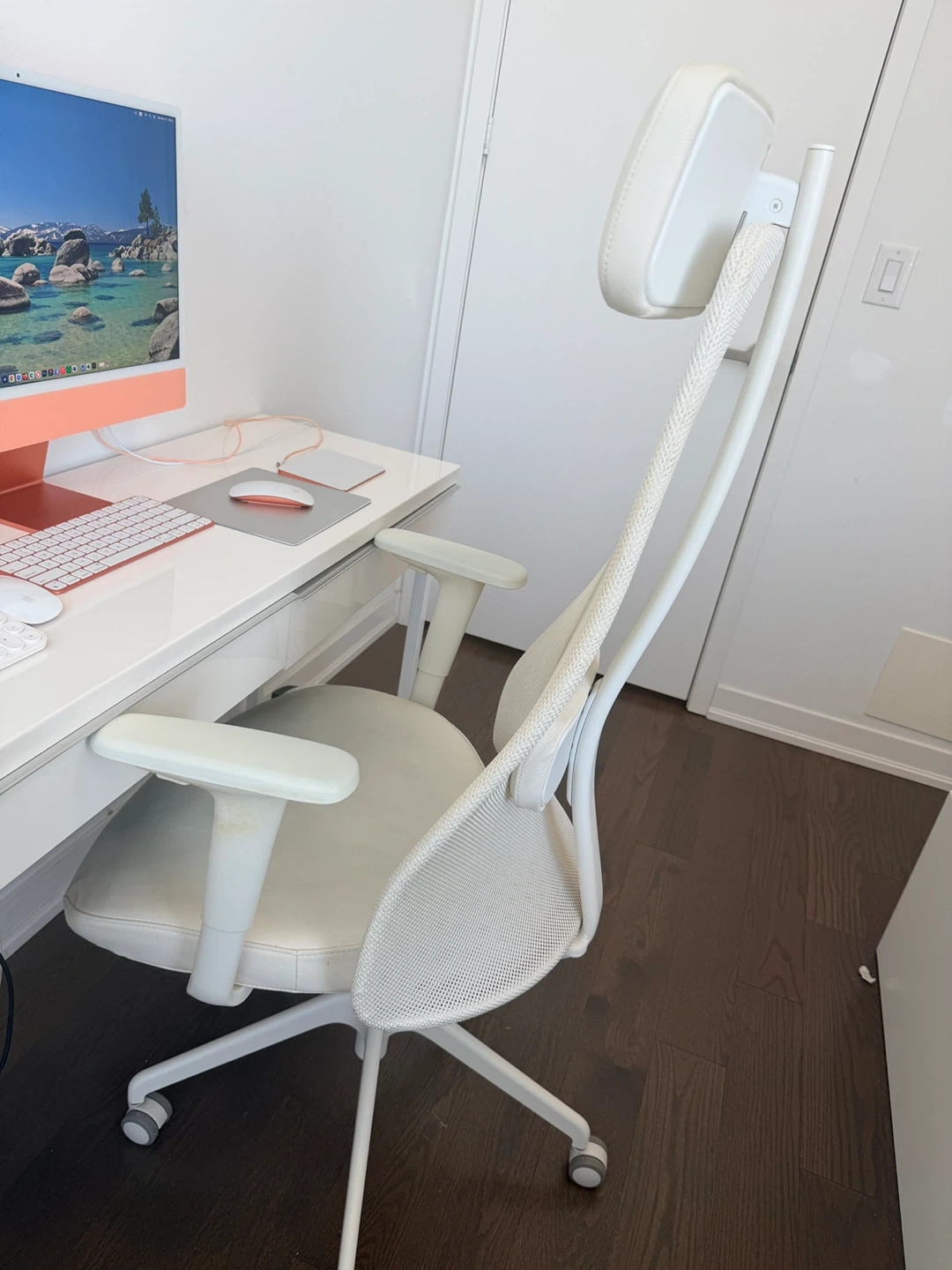 iMac + color laser Jet pro printer + work desk + work chair