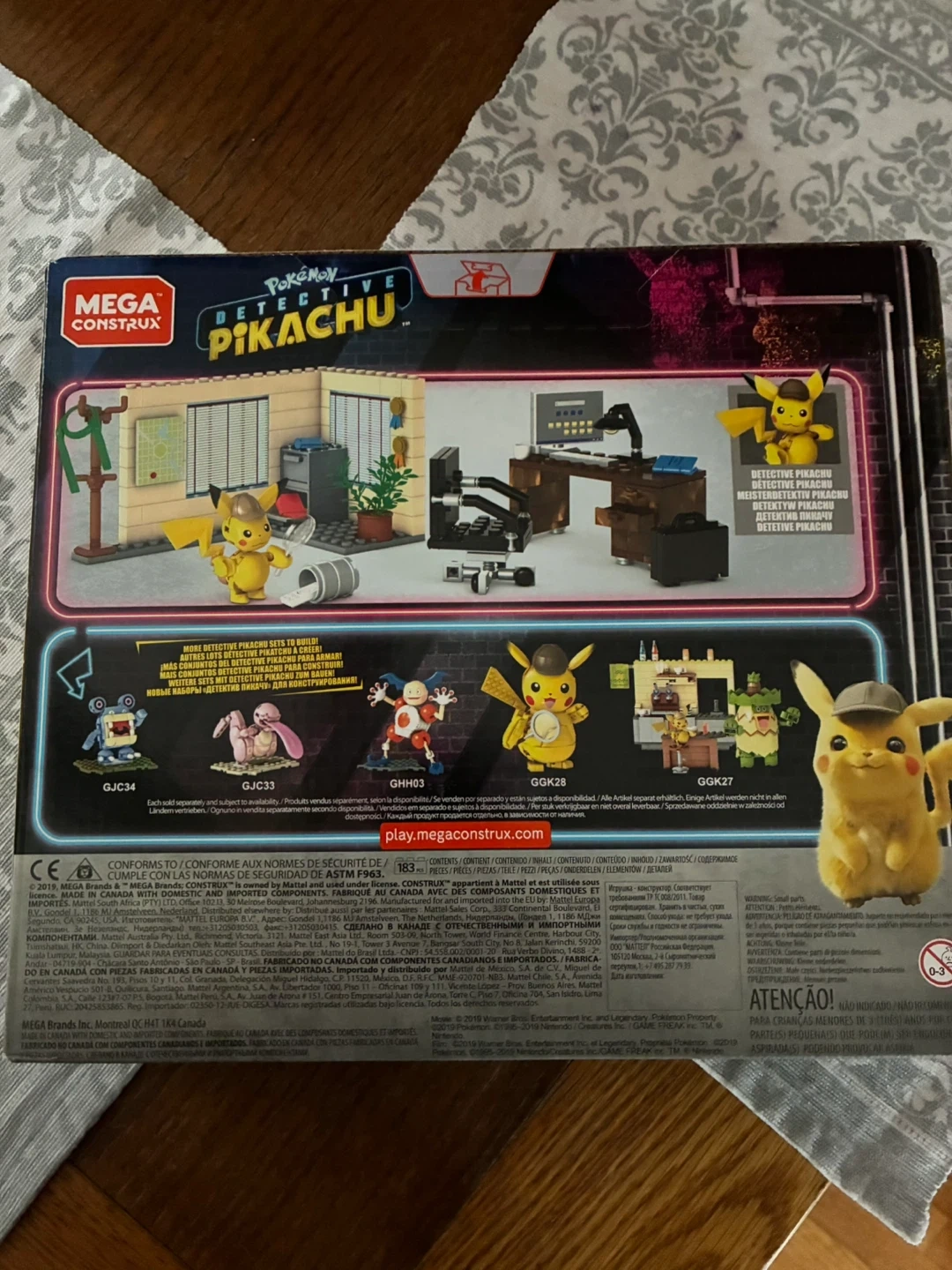 Selling a Mega Construx Pokémon Detective Pikachu Office set. This set is perfect for Pokémon fans and building enthusiasts alike. It features a detailed office setting with a Detective Pikachu figure.