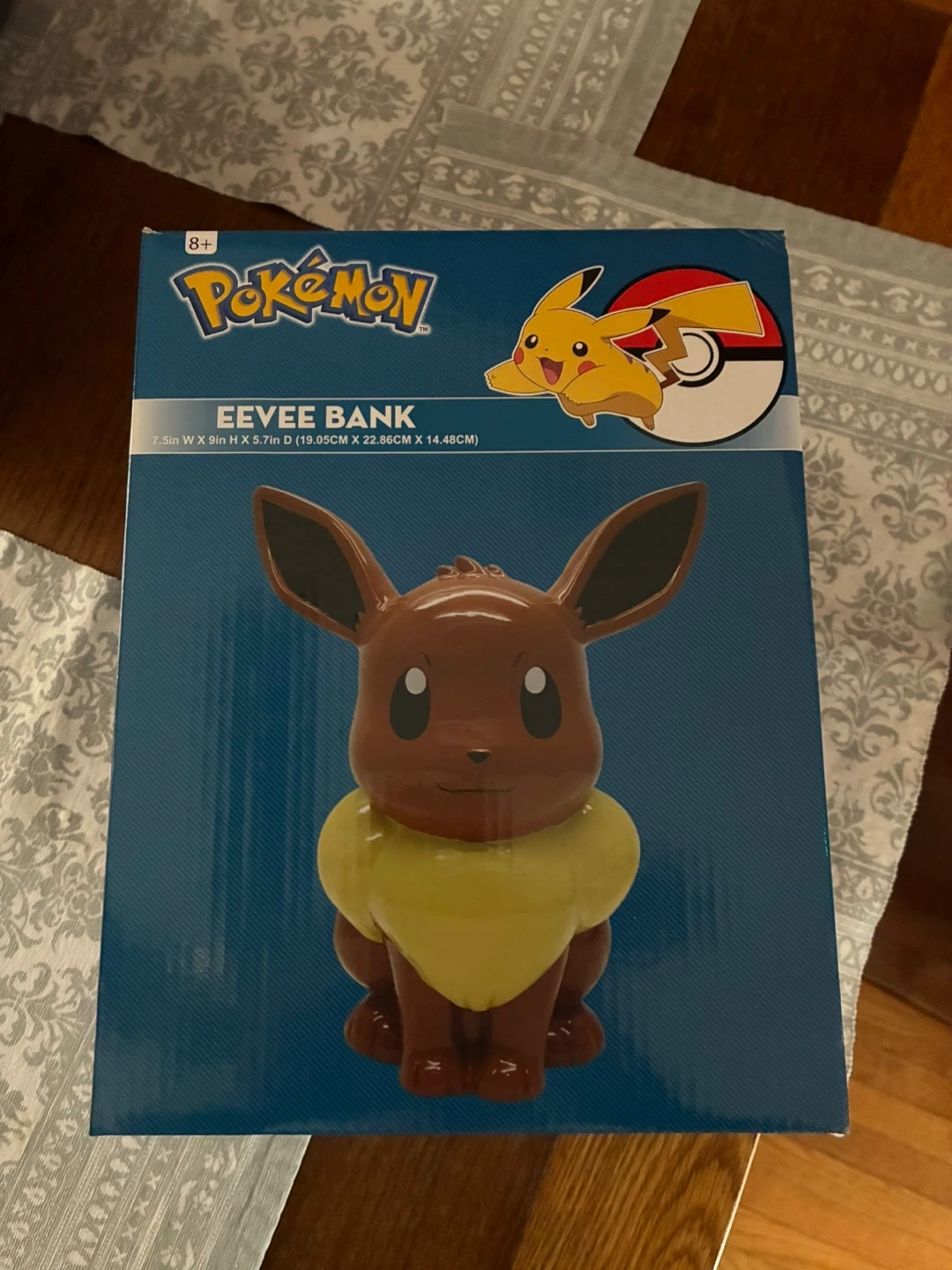 Selling a cute Pokemon Eevee Bank. It comes with the original box. The dimensions are 7.5 inches W x 9 inches H x 5.7 inches D (19.05 cm x 22.86 cm x 14.48 cm)