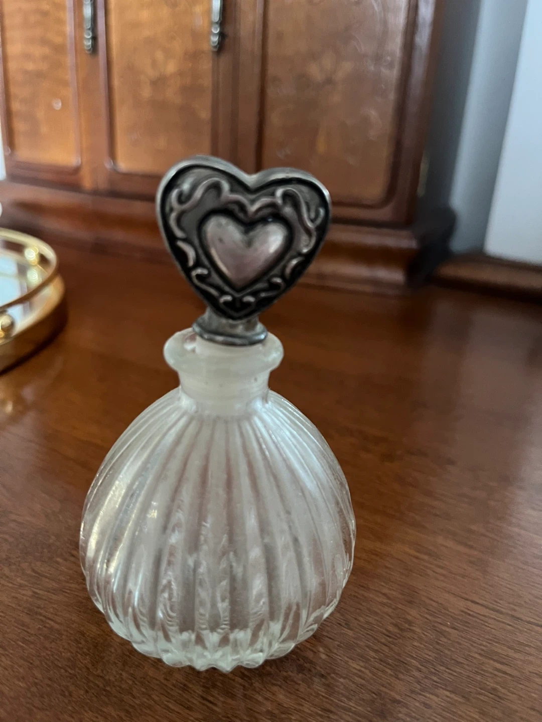 Selling a cute heart-shaped glass trinket box with a decorative silver-tone lid. It's in great condition and perfect for storing small jewellery or keepsakes