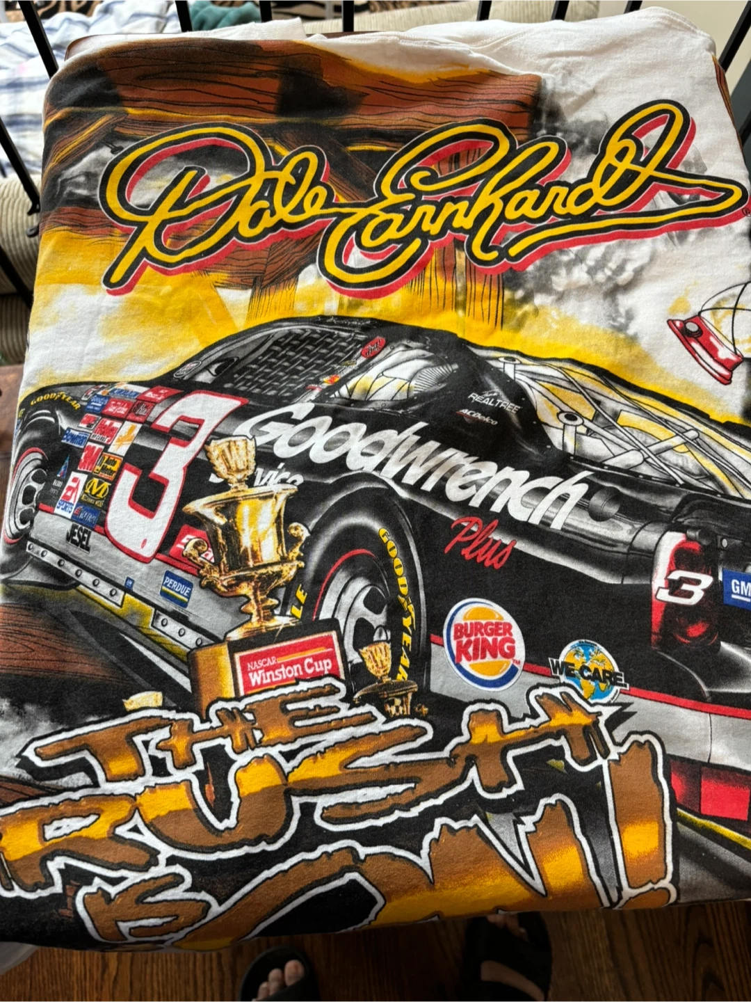 Selling a Chase Authentics Dale Earnhardt T-shirt in size 2X. It's made of 100% pre-shrunk cotton and assembled in Mexico. Great for any NASCAR fan!