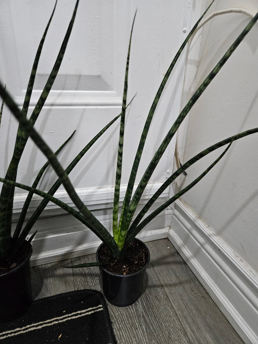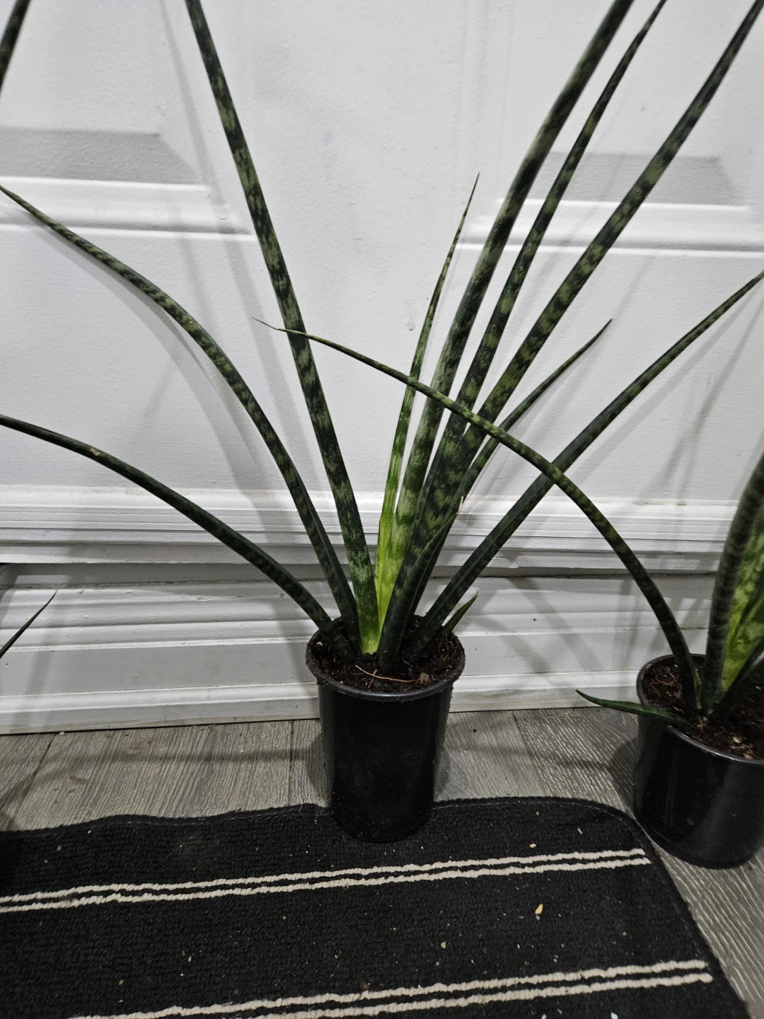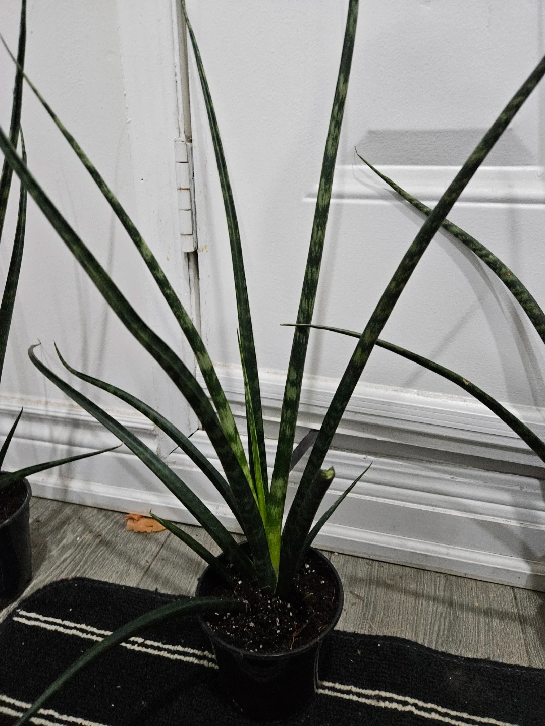 I have a Sansevieria Cylindrica, also known as a snake plant, for sale! It's in great condition and comes in a black pot. Perfect for adding a touch of greenery to your home