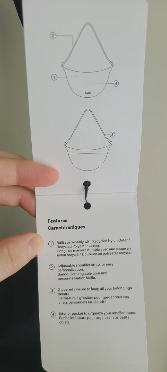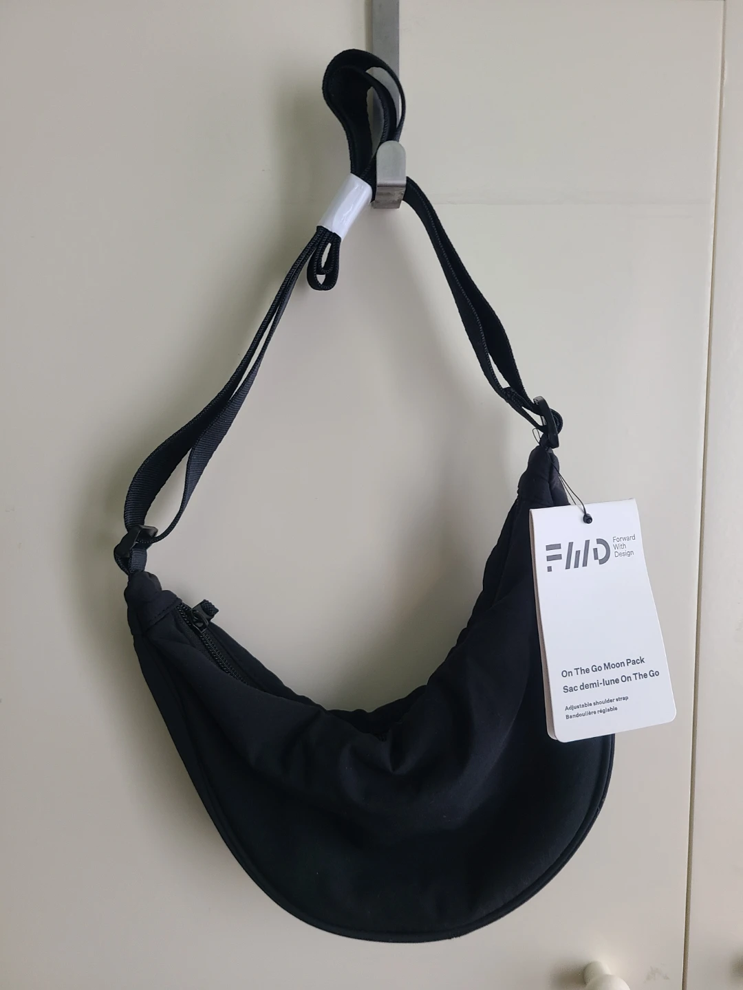Selling a FWD On The Go Moon Pack in black! It's built sustainably with a recycled nylon outer and recycled polyester lining. It also features an adjustable shoulder strap for easy personalization, a zippered closure to keep all your belongings secure, and an interior pocket to organize your smaller items.