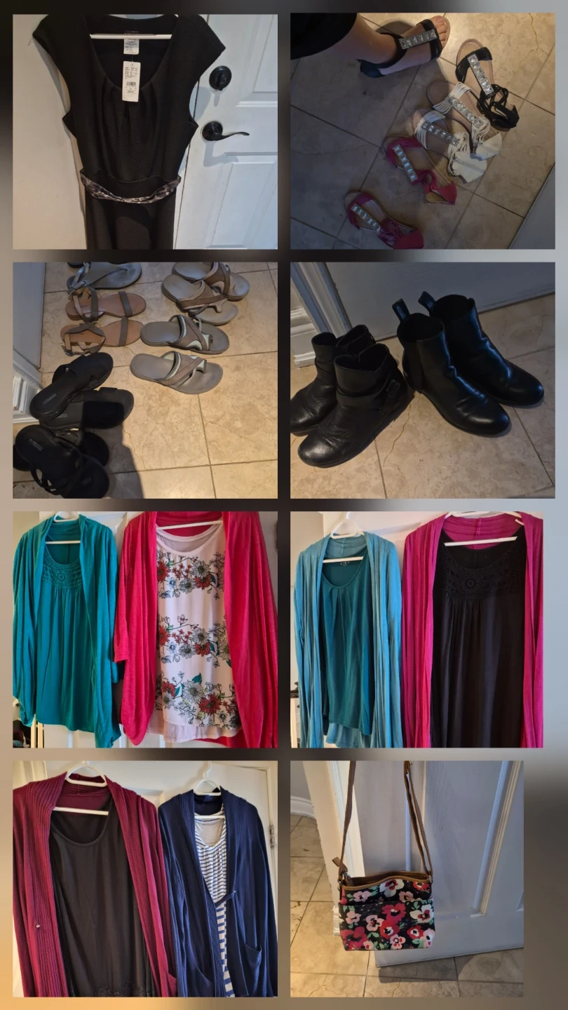Good clothing for ladies. Includes a brand new Laura black dress size 1x. Great for new year's celebration!