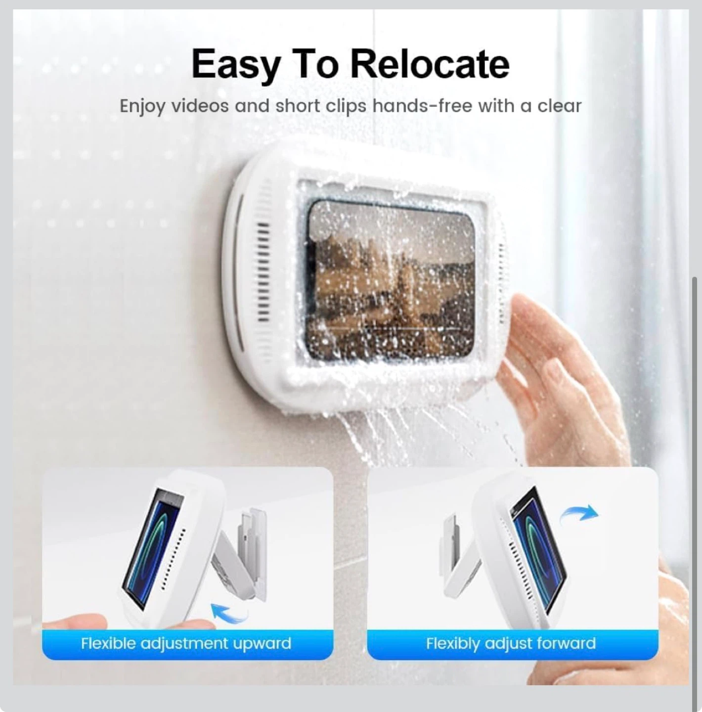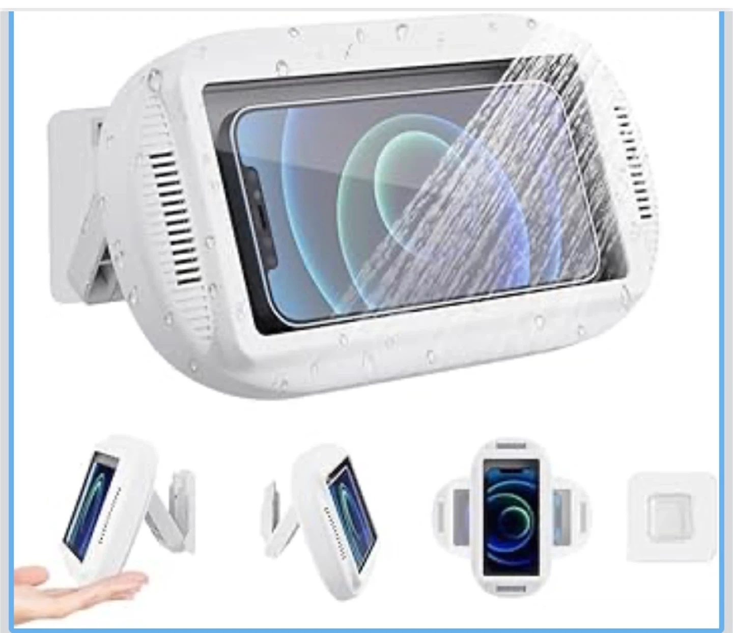 Waterproof Shower Phone Holder with 480° Rotation, Angle Adjustable, Wall Mounted Phone Holder for Bathroom Mirror Bathtub Kitchen, Up to 6.8 Inch