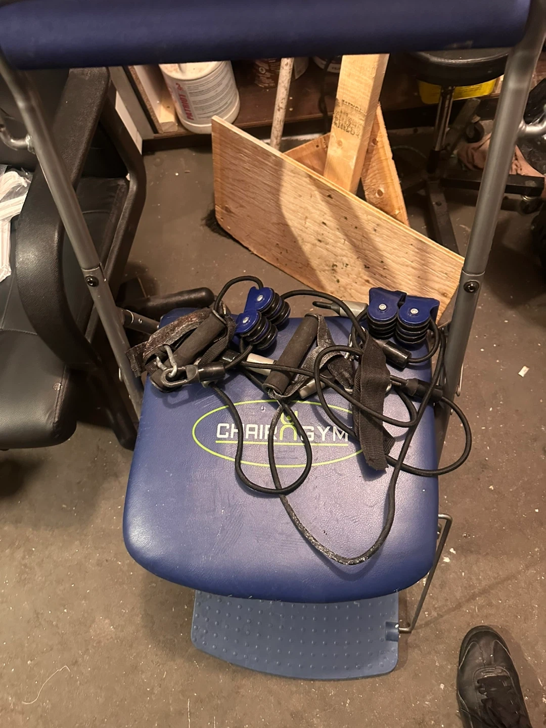 Selling a Chair Gym total body exercise system. It is a lightweight and portable system that can help you get a full body workout at home. Perfect for small spaces!