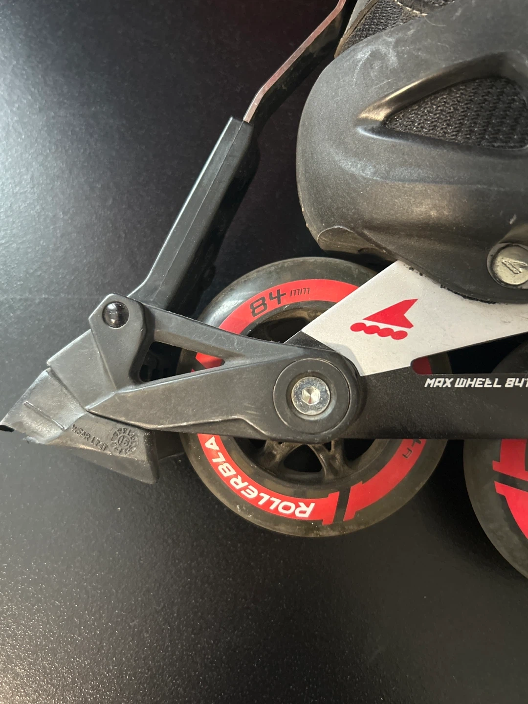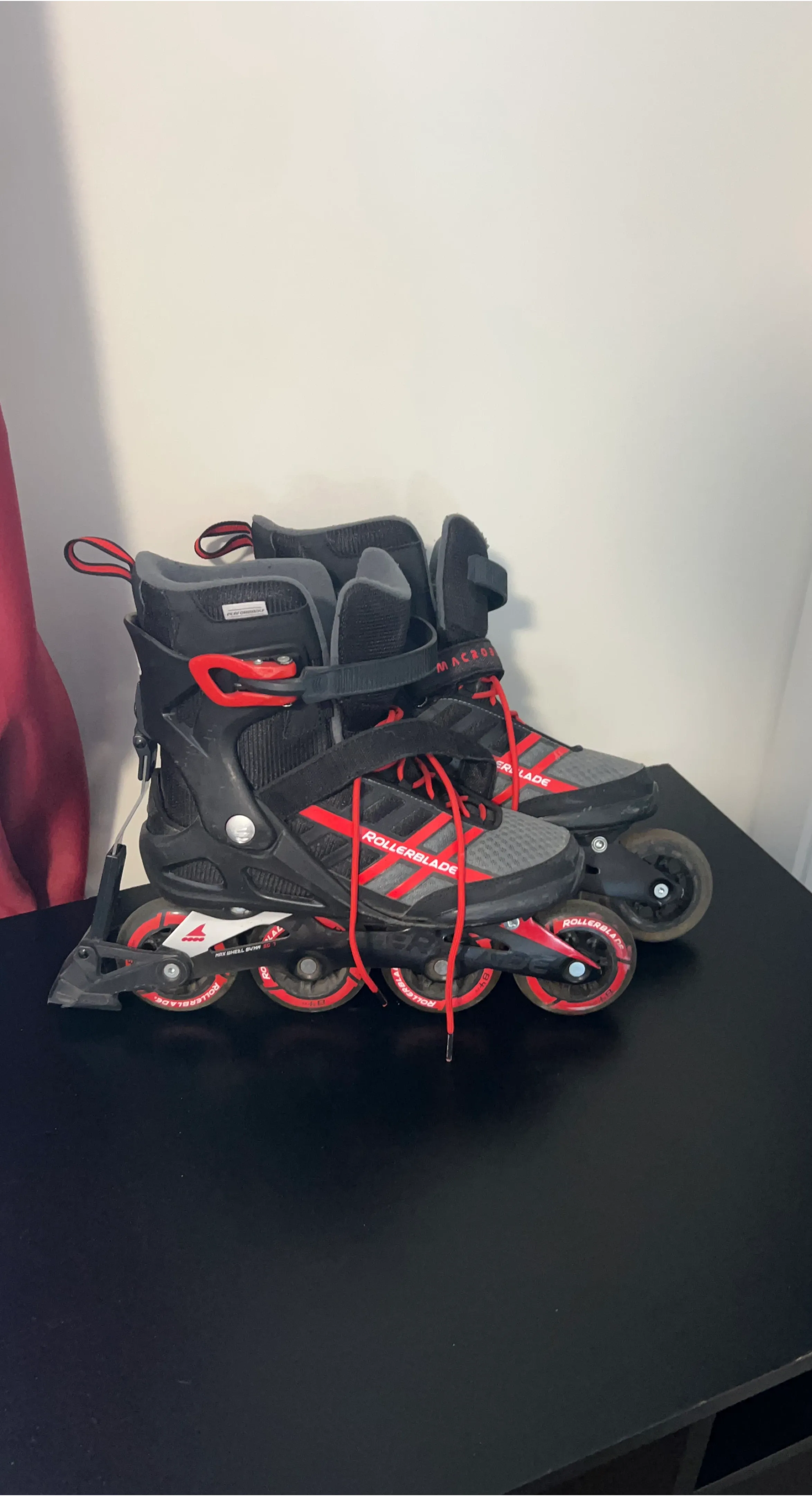 Selling a pair of Rollerblade Macroblade 84 inline skates. These are size US 8.5. They feature 84mm wheels. Slight wear on the brake pad, otherwise in good condition.