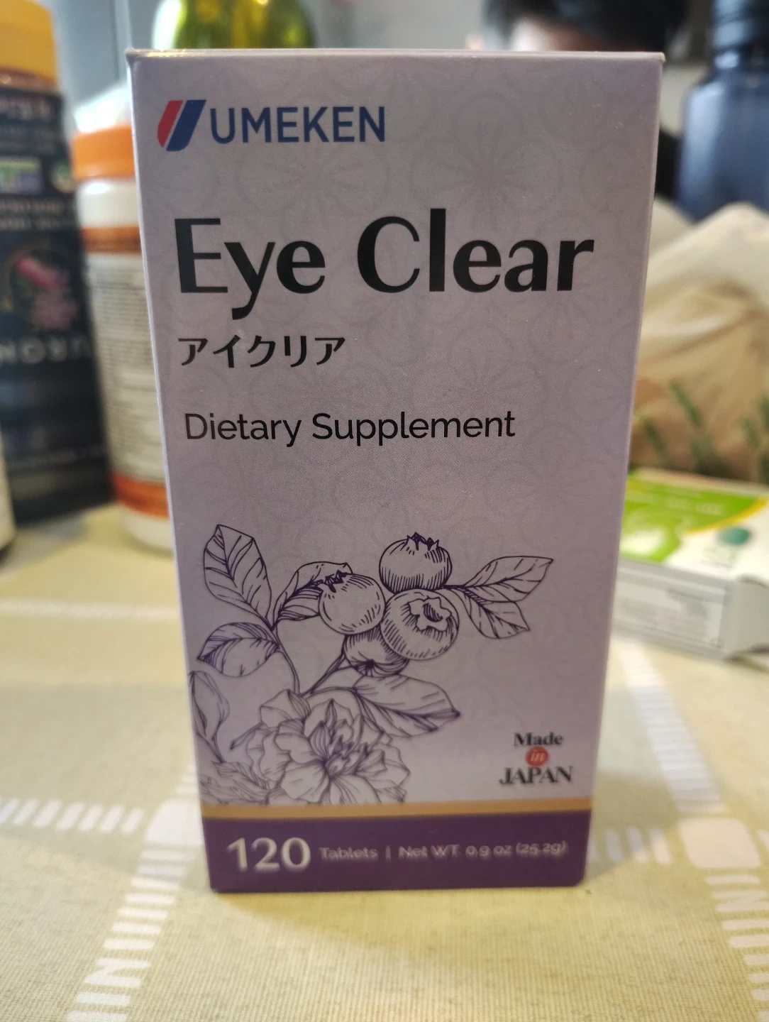 Selling a new box of Umeken Eye Clear dietary supplements! This box contains 120 tablets, with a net weight of 0.9 oz (25-29). Made in Japan. Expire date 2028.03
