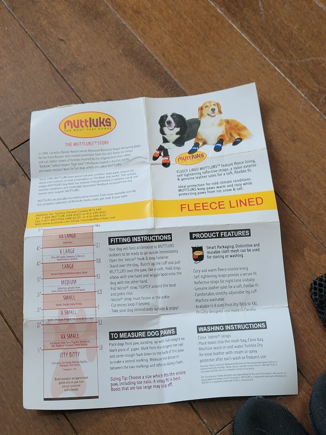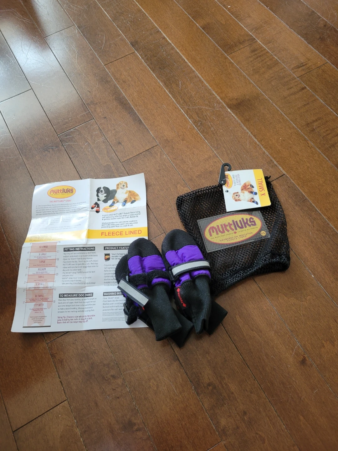 Muttluks Dog Winter Boots includes instructions, carry bag four purple/black boots.