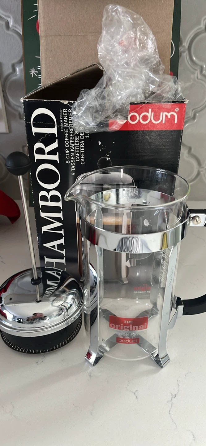 Selling a Bodum Chambord French press coffee maker! It's an 8-cup size, perfect for brewing a few cups of coffee. Comes with the box