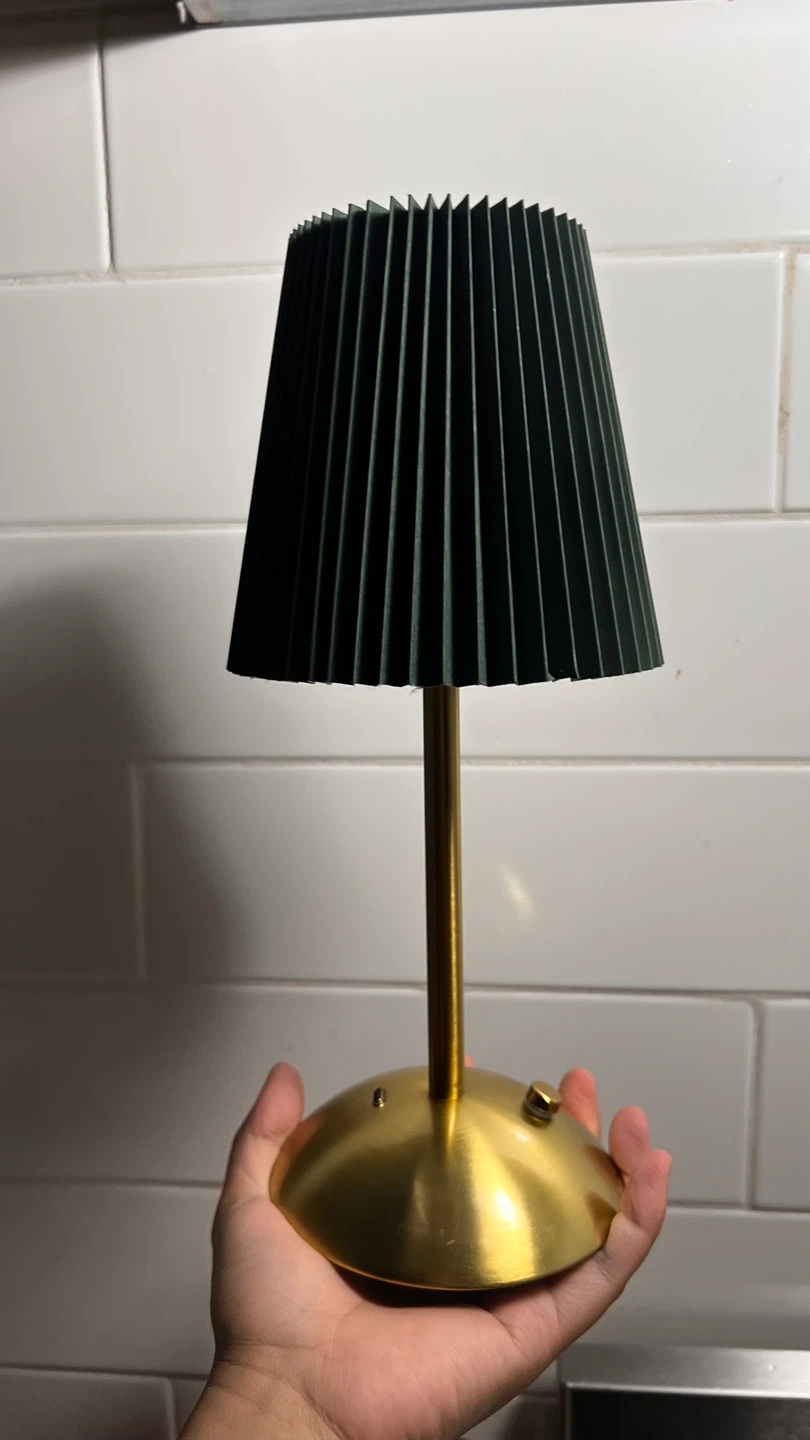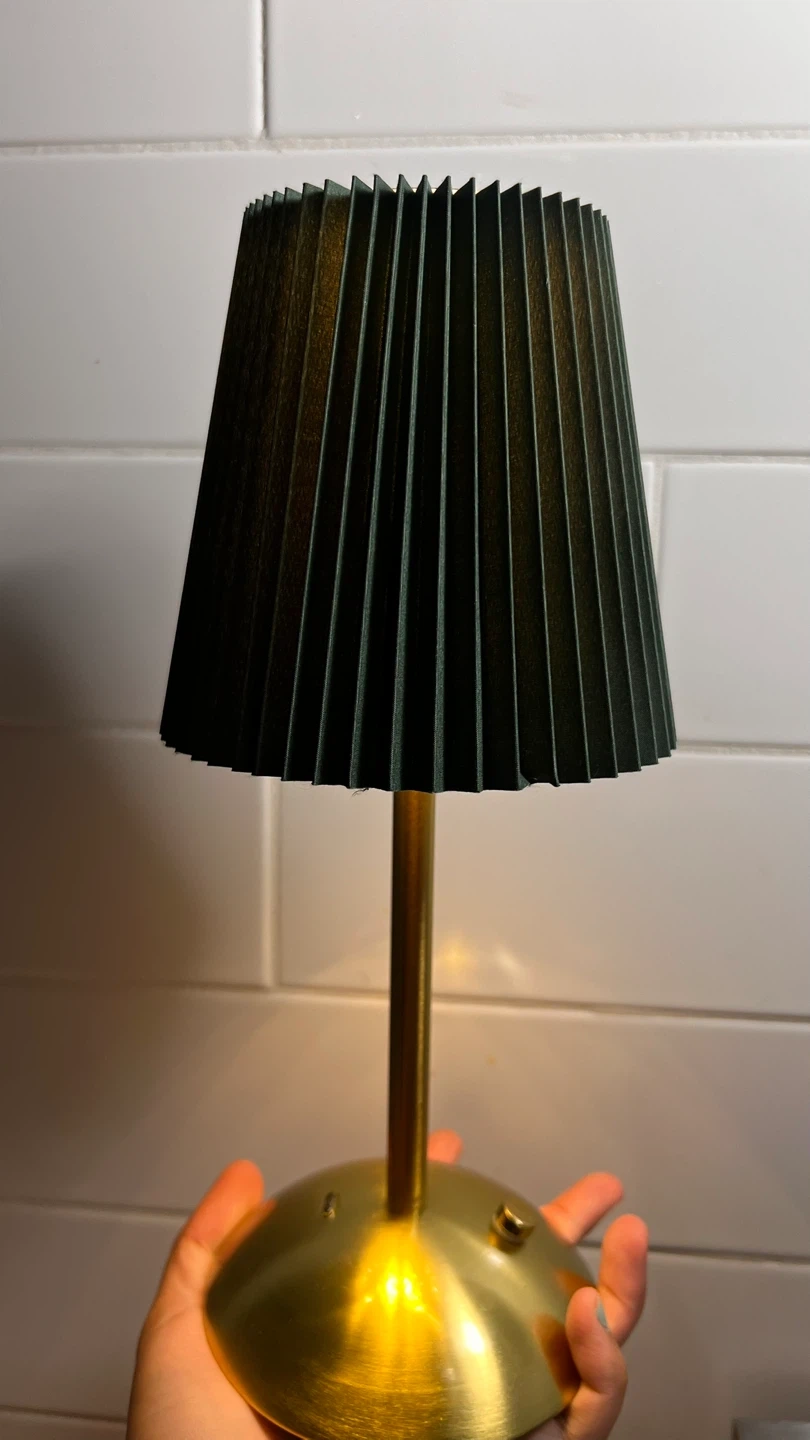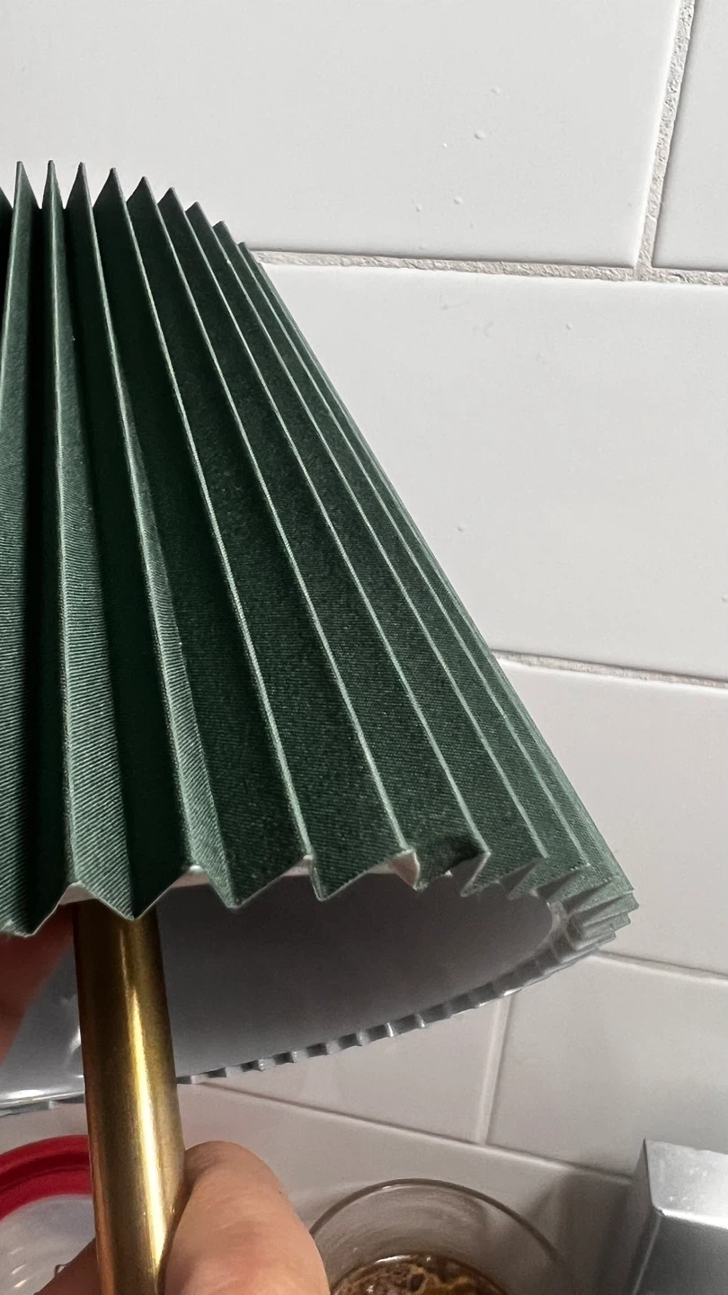 Selling a lovely green pleated table lamp! It features a stylish pleated shade and a sleek brass-coloured base. It's in excellent condition and would add a touch of elegance to any room
