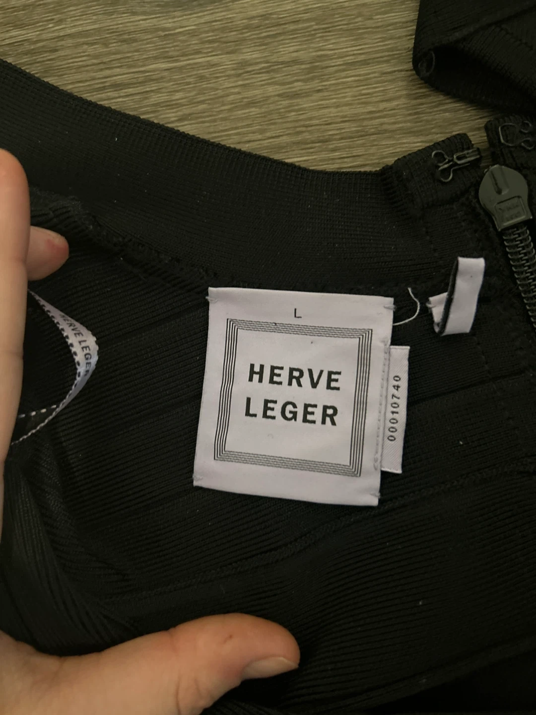 Selling a Herve Leger black dress in size L. It's in great condition and ready for a new owner! Perfect for a night out or special occasion.