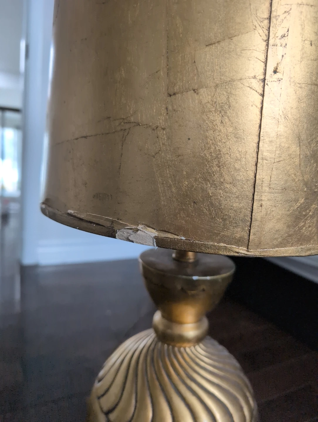 Selling a gold coloured table lamp. There are some signs of wear and tear, as shown in the pictures. It would be a great addition to any room!