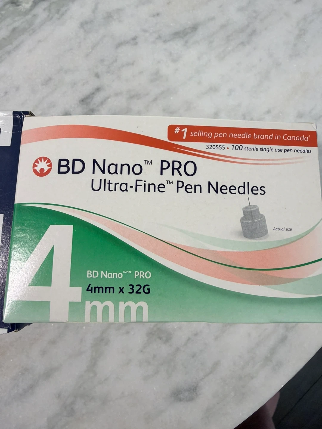 Selling a box of BD Nano PRO Ultra-Fine Pen Needles. These are 4mm x 32G. The box contains 100 sterile single use pen needles. A #1 selling pen needle brand in Canada