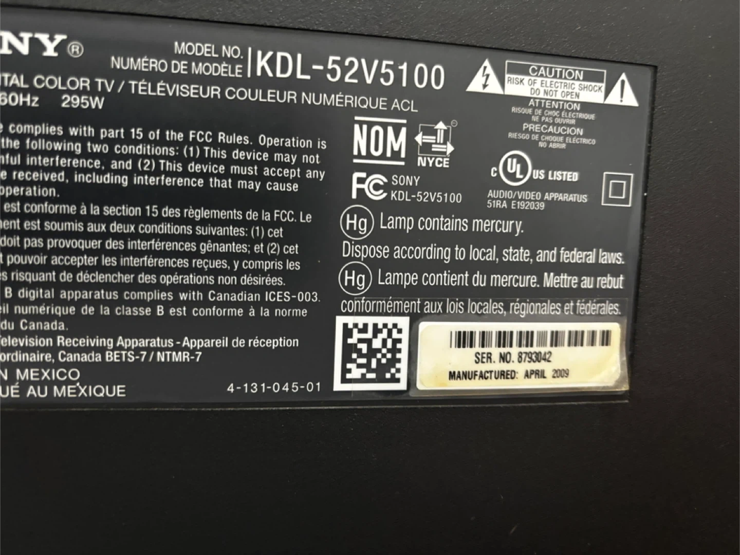 Selling a Sony KDL-52V5100 52-inch TV. The TV has a variety of input options, including HDMI and component video, making it versatile for connecting your devices.