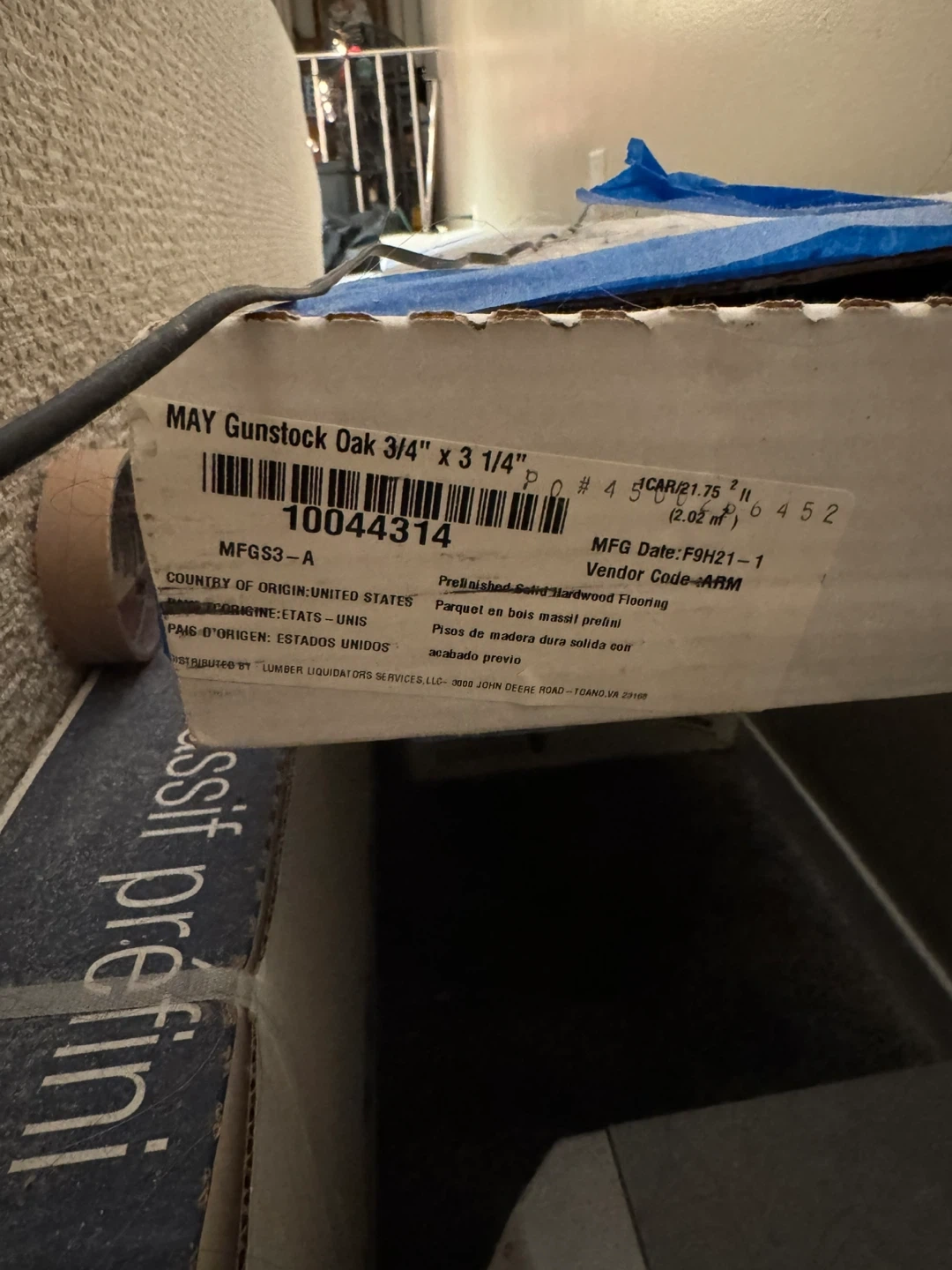 Selling MAY Gunstock Oak prefinished solid hardwood flooring. Each plank measures 3/4" x 3 1/4". Manufacturing date is 2021 November 21