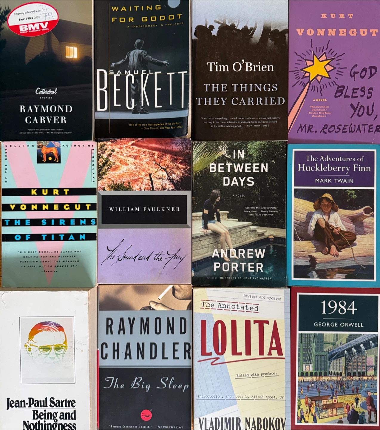 Selling a collection of paperback novels, featuring classics by Kurt Vonnegut (Sirens of Titan, God Bless You, Mr. Rosewater), Mark Twain (The Adventures of Huckleberry Finn), George Orwell (1984), and others. Perfect for a book lover looking to expand their library!