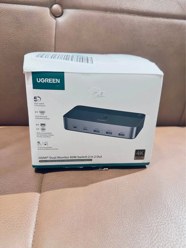 UGREEN HDMI Dual Monitor KVM Switch (2 In 2 Out) in excellent working condition. Allows you to control two computers using one keyboard, mouse, and two monitors. Perfect for work-from-home, developers, IT setups, and dual-PC users.