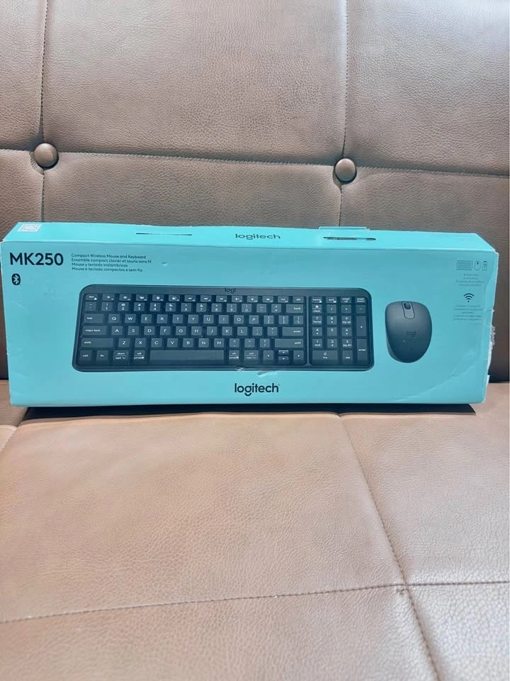 Logitech MK250 wireless keyboard and mouse combo in like-new condition. Works perfectly and very clean. Compact keyboard with number pad and smooth wireless mouse. Easy plug-and-play with USB receiver. Suitable for home, office, or study use. Comes with original box.