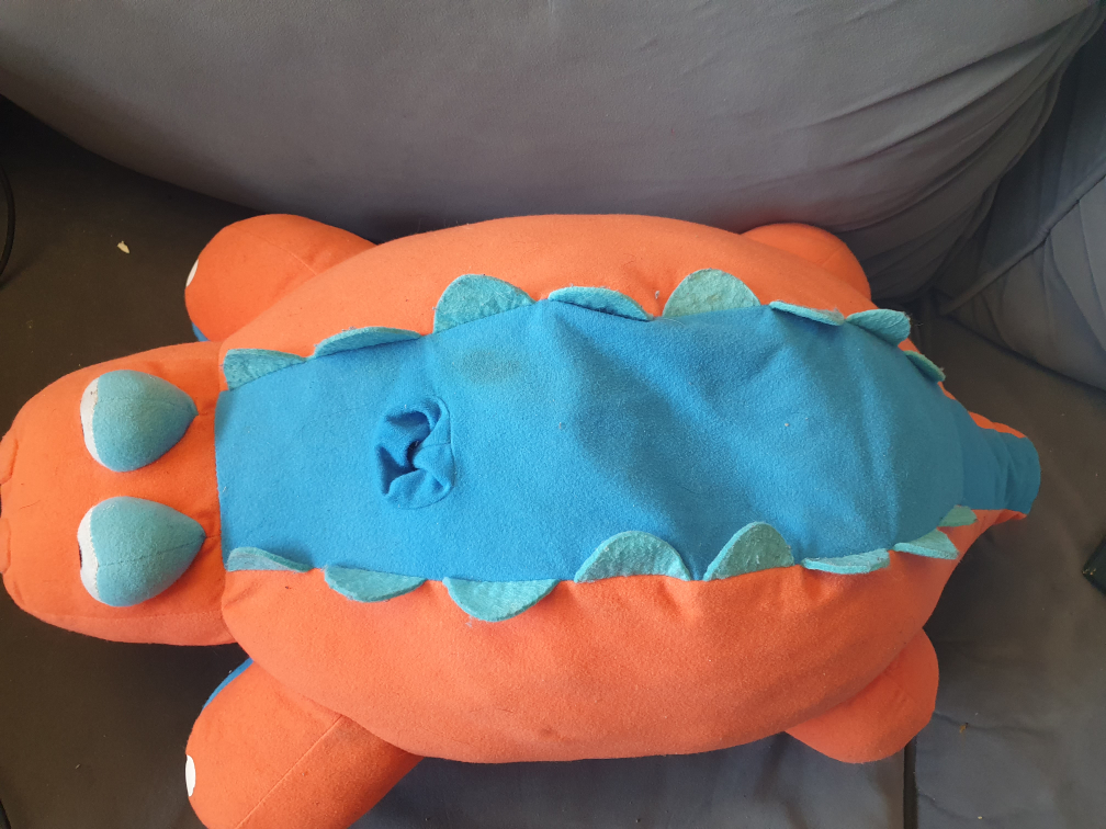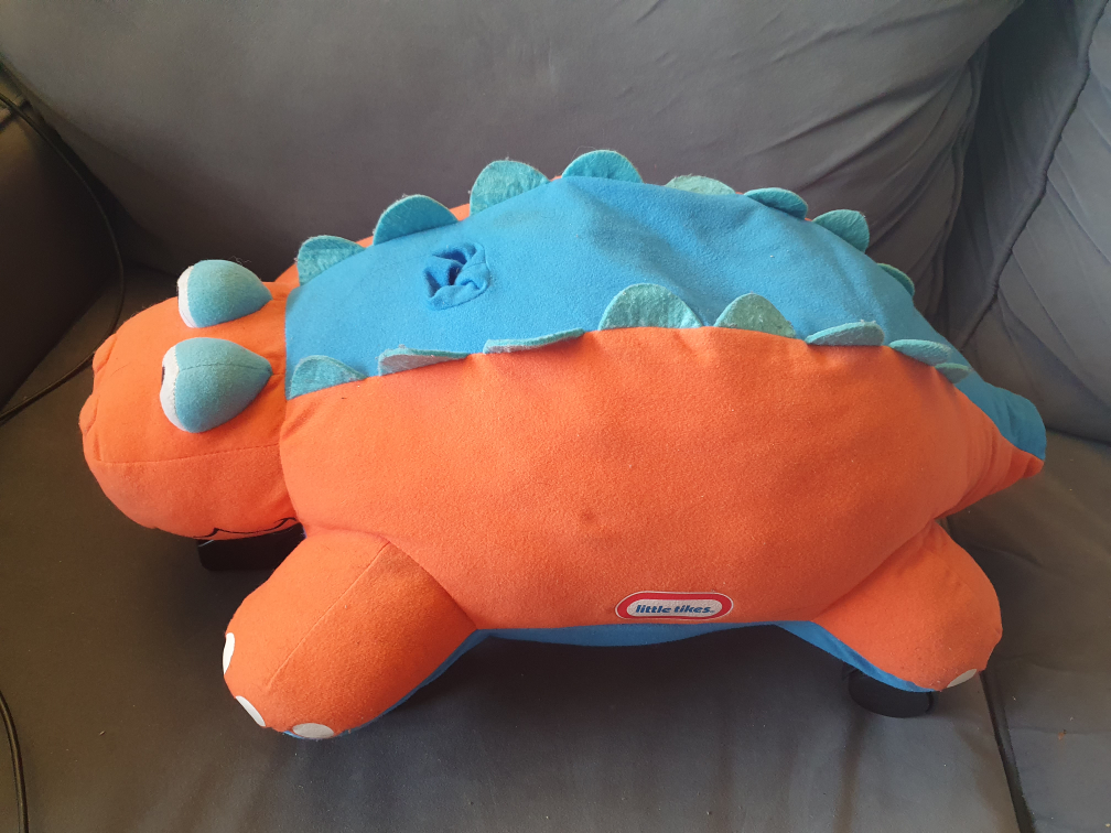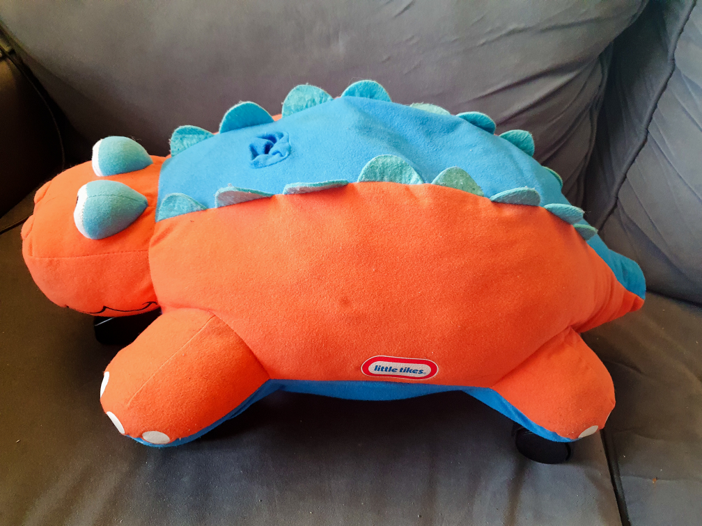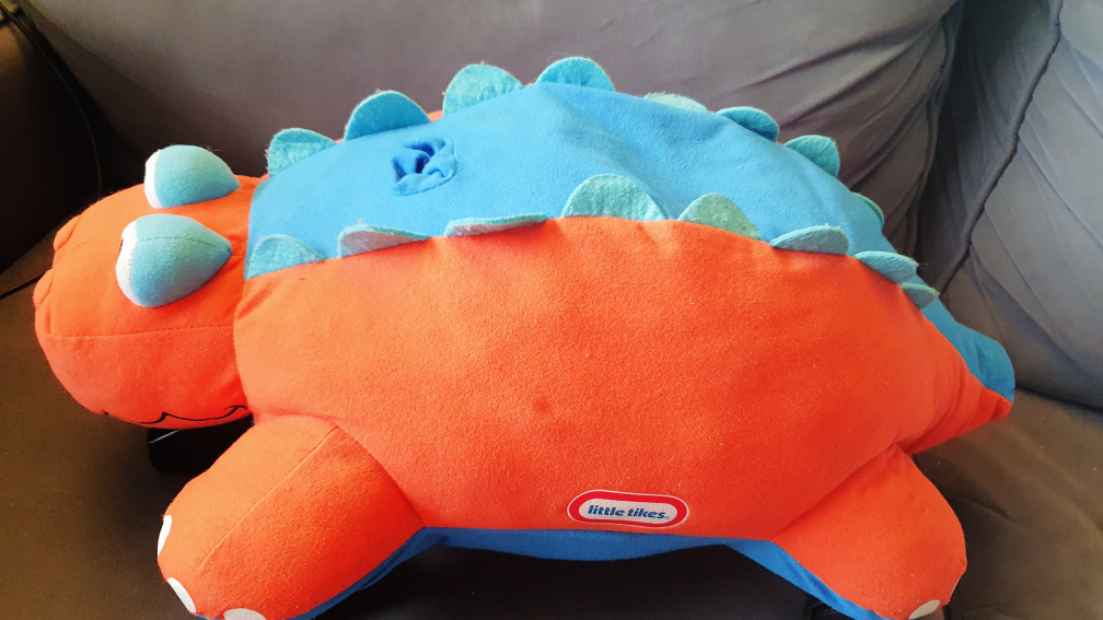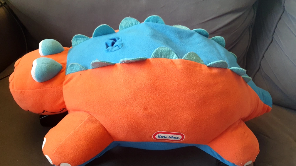 Selling a cute dinosaur pillow from Little Tikes! It's in great condition and would be perfect for a kid's room or playroom. The pillow is orange and blue, and features a soft, plush design.