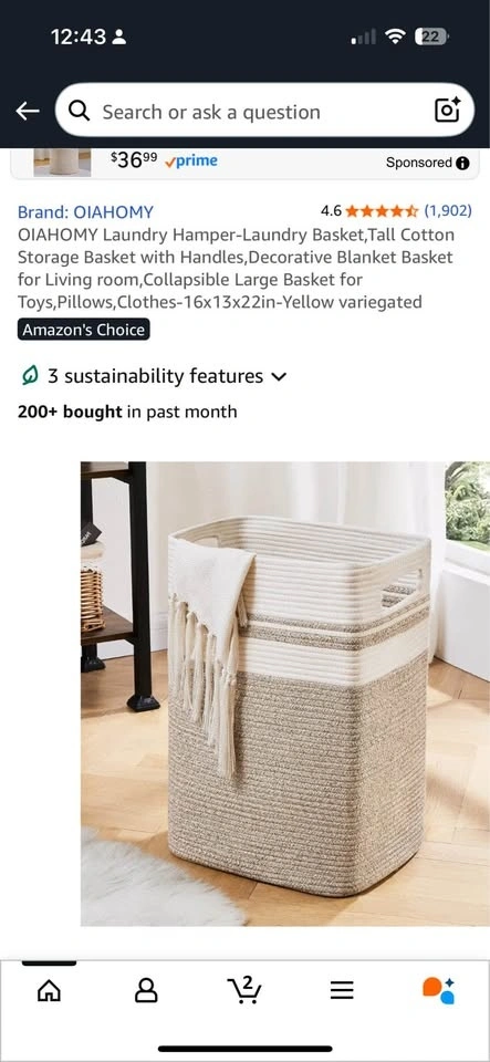 Moving Out Sale – Large Cotton Laundry Hamper / Storage Basket