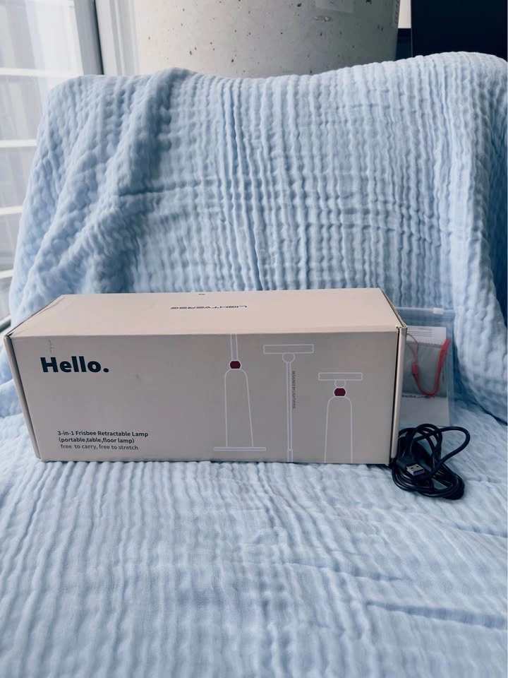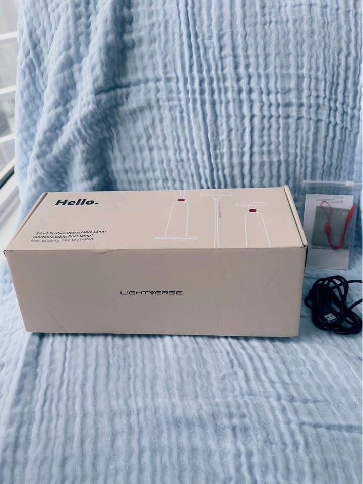 Includes lamp, charging cable, cleaning cloth, and original box.