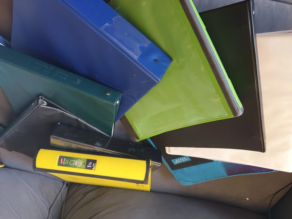 Used binders in various sizes and colours. Great for school, work, or organizing your documents. They're ready to help you stay organized