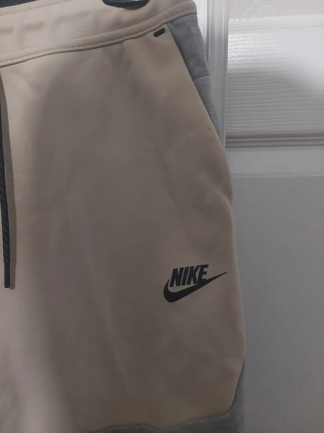 Selling a pair of Nike Tech Fleece pants in size medium! They're a stylish beige and grey colour. Great for lounging or working out!