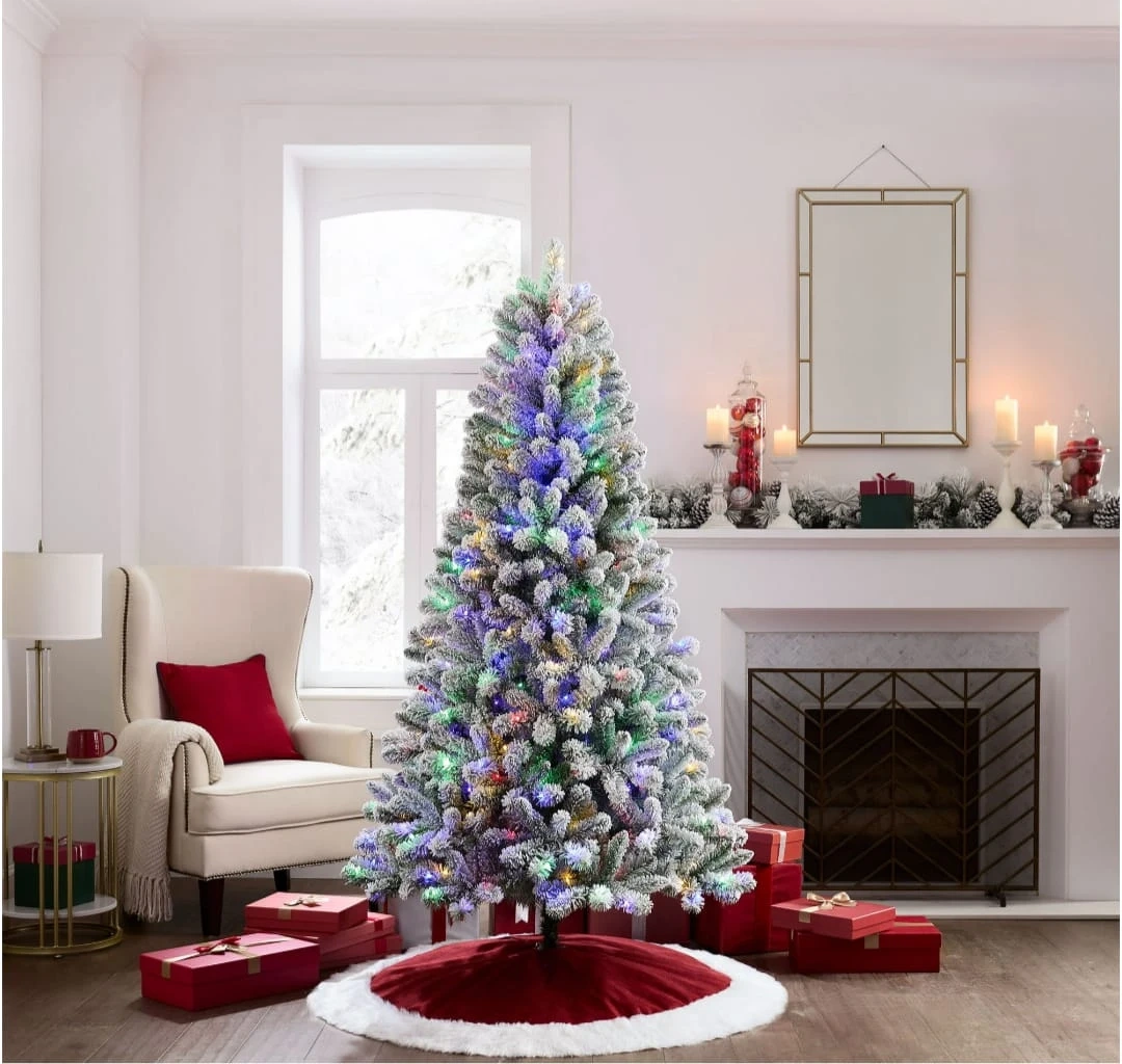 Selling a beautiful flocked Christmas tree, perfect for adding a touch of winter wonderland to your home this holiday season! It comes with pre-installed lights, making setup a breeze. The flocked branches give it a realistic, snowy look that will impress your guests