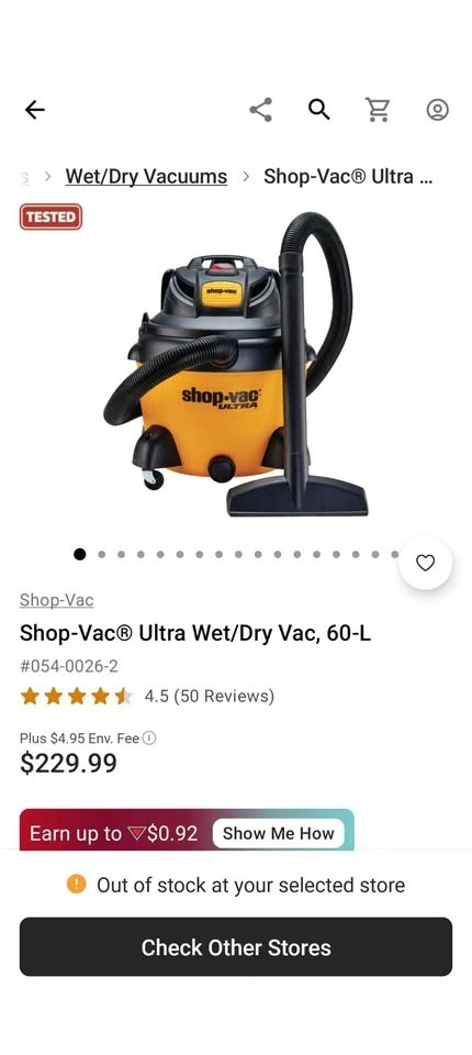 Hardly used 60.5 L Shop Vac Ultra. Currently retails for $229.99 plus taxes at Canadian Tire. Brand new collector bag included. The filter was only used once. All original accessories also included.