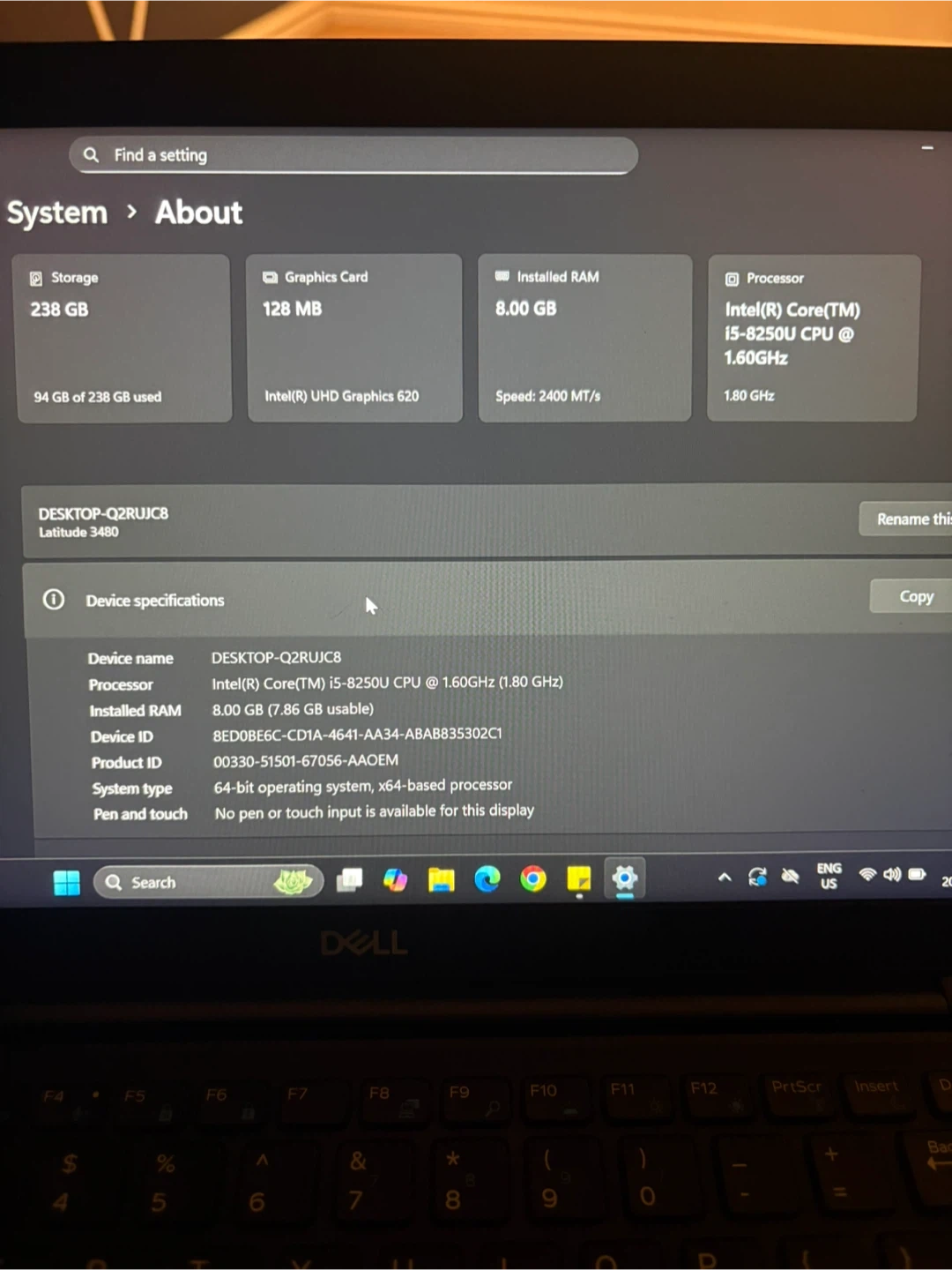 Dell Latitude 3480 Laptop - i5, 8GB RAM, 238GB SSD