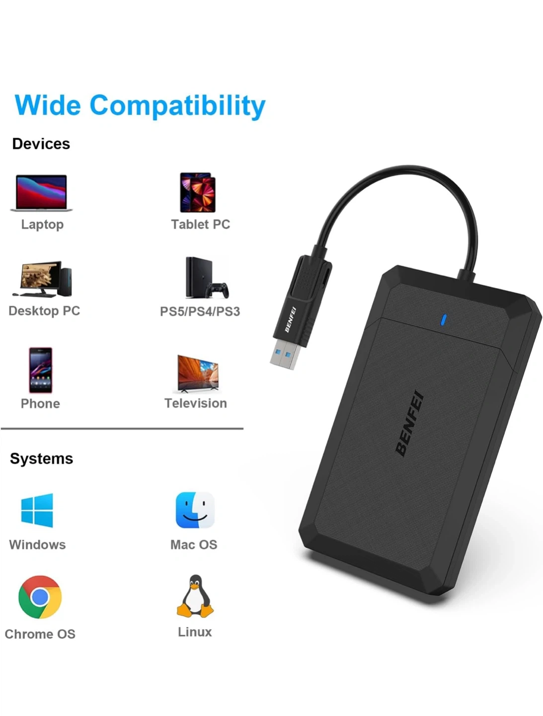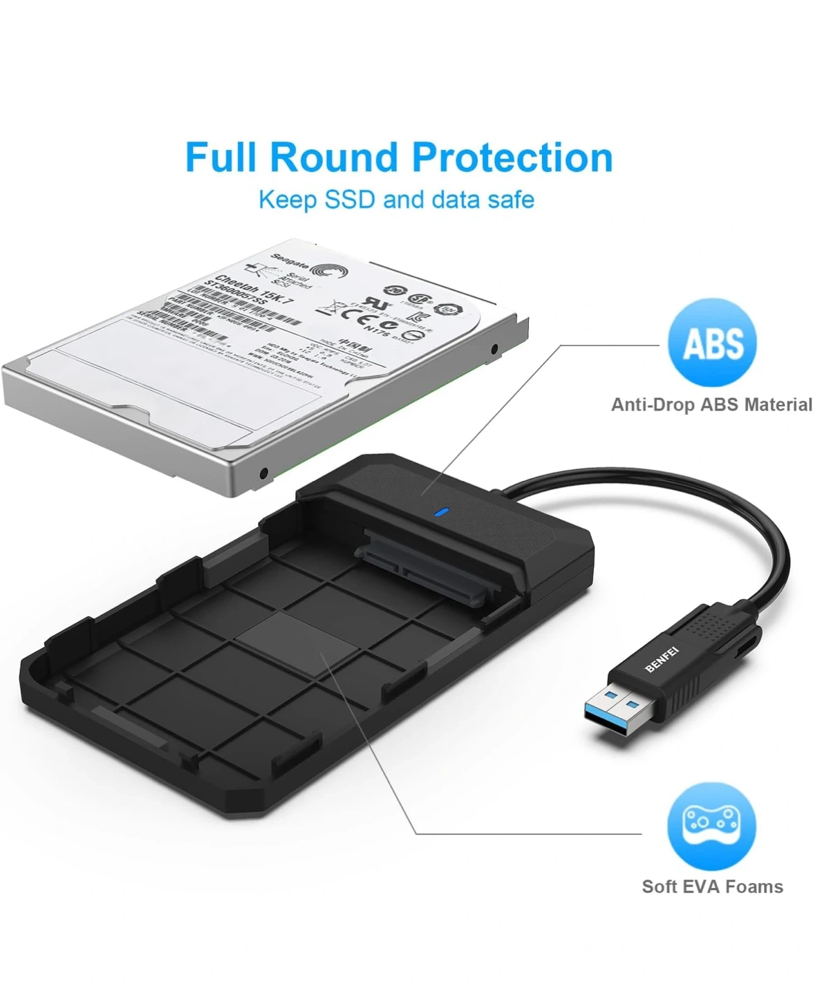 New BENFEI 2.5 Inch SATA to USB Hard Drive Enclosure Adapter