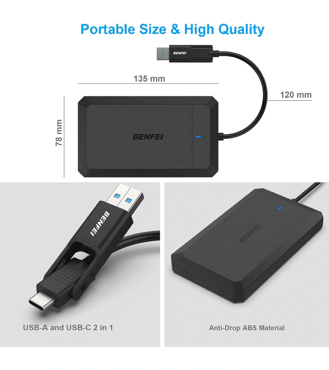 I'm selling a new BENFEI 2.5 Inch SATA to USB Tool Free External Hard Drive Enclosure Adapter, which supports UASP and is compatible with both USB-A and USB-C interfaces. This enclosure is designed for 2.5-inch SATA HDDs and SSDs, offering a convenient way to connect your drives to various devices.