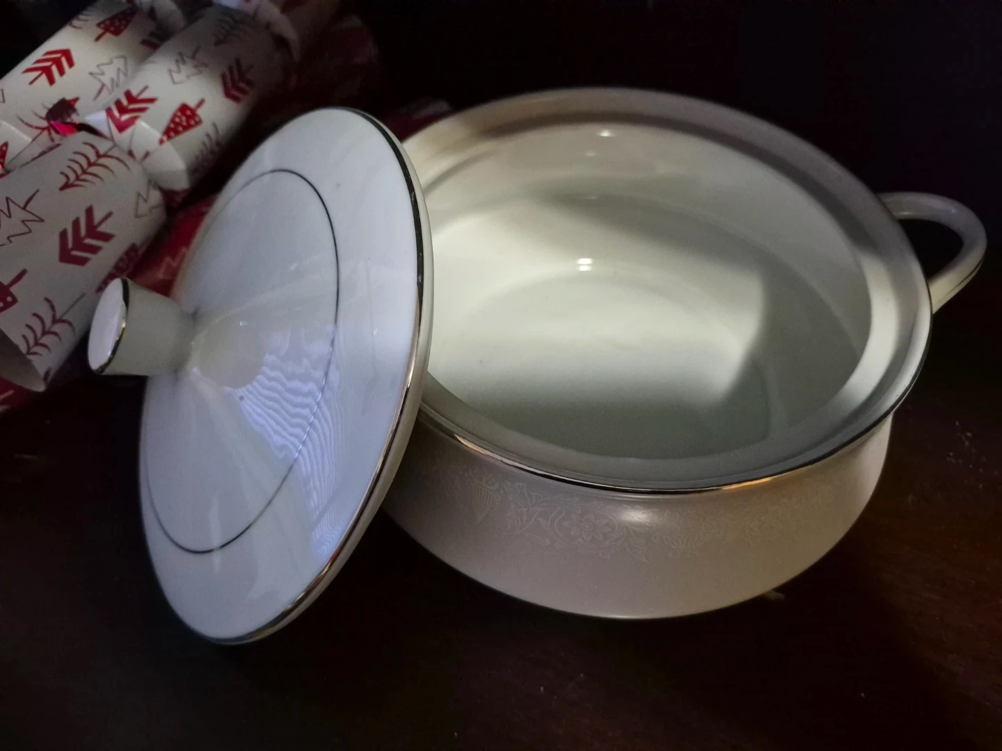 Selling a lovely Crown Victoria Lovelace covered casserole dish. It's in great condition and features a delicate floral pattern. Perfect for serving up your favourite dishes!