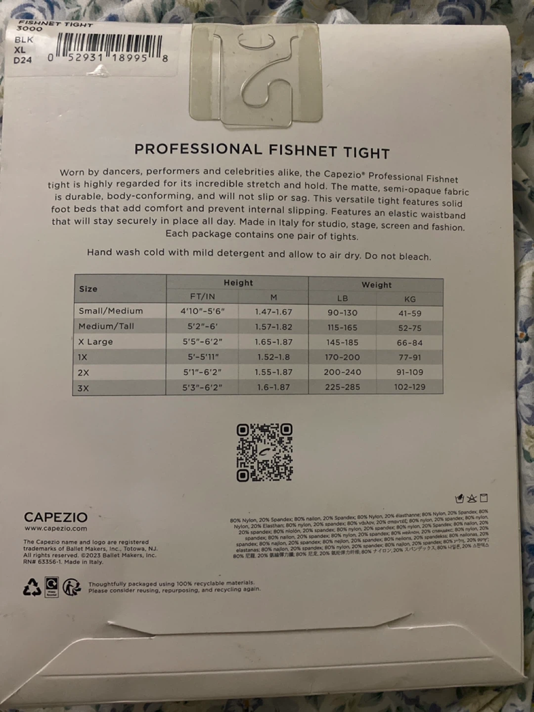 Here's a pair of Capezio professional fishnet tights in black, size XL! These tights offer incredible stretch and hold, with a matte, fishnet finish. They're durable, body-conforming, and won't slip or sag. Perfect for studio, stage, screen, and fashion