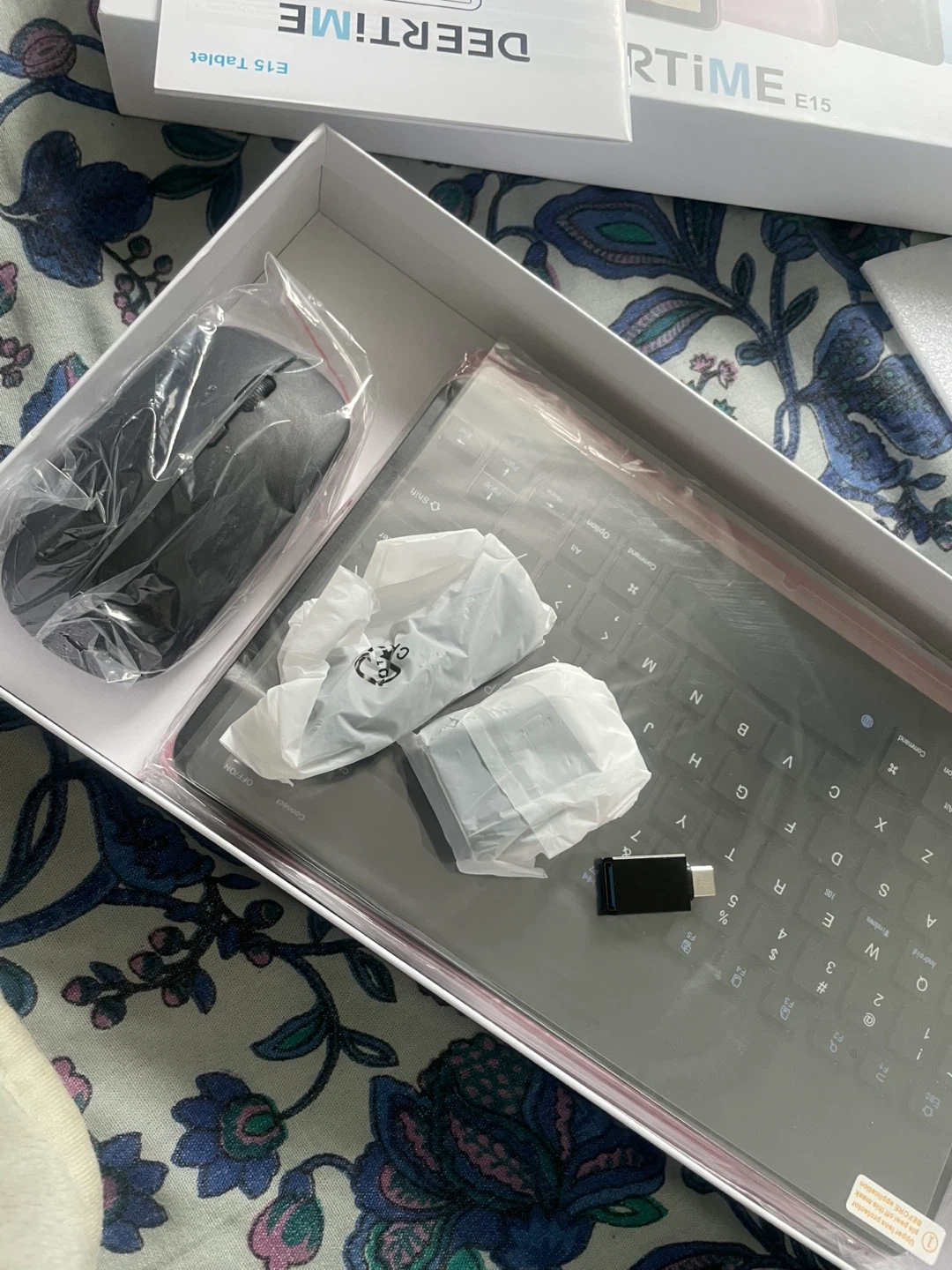 Selling a brand new Deertime E15 tablet! It comes with a keyboard and mouse, all still in their original packaging. The box is included and everything is ready for a new user. It's a great little set to have! Original price - 199.plus tax