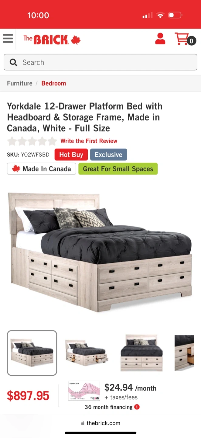 Selling a Yorkdale 12-Drawer Platform Bed with Headboard and Storage Frame in a full size, purchased from The Brick at WEM. It's in great condition and the 12 drawers are large and spacious you could store a LOT of stuff!! *Mattress not included**.