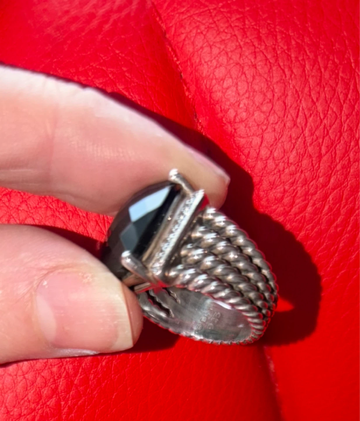 Selling a David Yurman ring featuring a beautiful black onyx stone. It comes with its original pouch. This ring is a stunning statement piece!